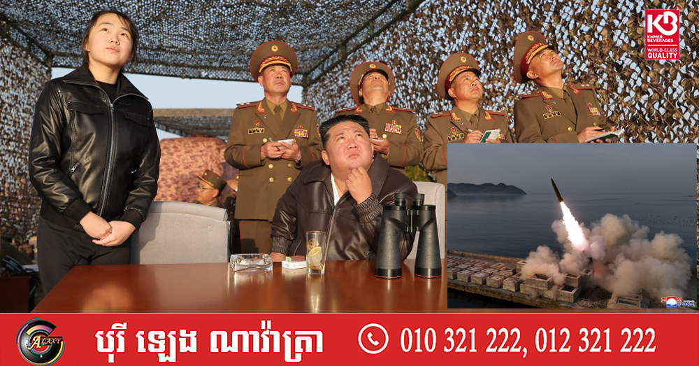 KCNA នៅថ្ងៃចន្ទនេះដែរបានបញ្ចេញរូបថតបង្ហាញពីលោក គីម ជុងអ៊ុន និងកូនស្រីរបស់លោកឈ្មោះ Ju Ae ពិនិត្យមើលការធ្វើតេស្តបាញ់មីស៊ីលអមដោយមន្ត្រីកូរ៉េខាងជើងជាច្រើននាក់៕