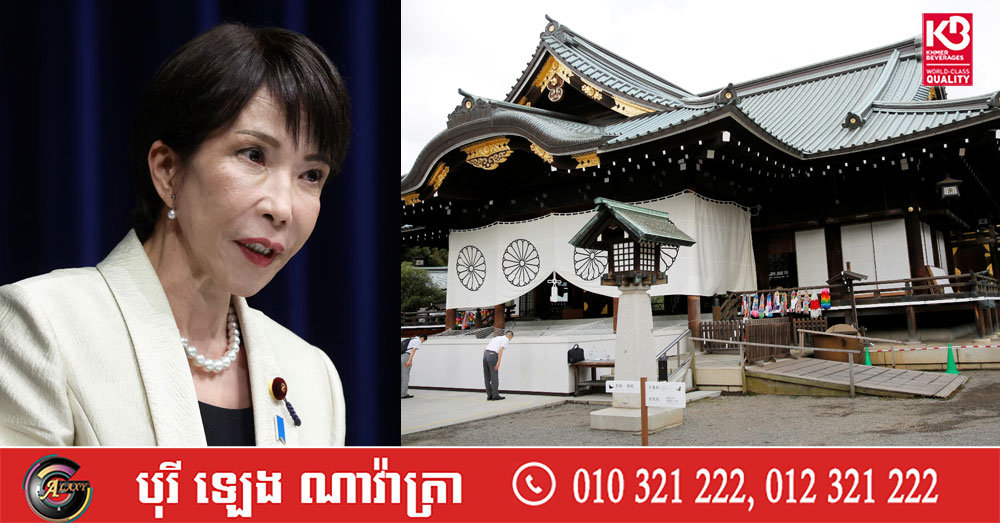 (តូក្យូ)៖ នាយករដ្ឋមន្ត្រីជប៉ុន លោកស្រី Sanae Takaichi នៅថ្ងៃអង្គារ ទី២១ ខែមេសា ឆ្នាំ២០២៦ បានផ្ញើសារគោរពទៅកាន់ព្រះវិហារ Yasukuni ដើម្បីឧទិ្ទសដល់វិញ្ញាណក្ខន្ធទាហាន និងមេដឹកនាំជប៉ុនស្លាប់ក្នុងសង្រ្គាមលោកលើកទី២ ខណៈការធ្វើបែបនេះតែងតែបង្កការខឹងសម្បារដល់ប្រទេសជិតខាងដូចជាចិន និងកូរ៉េខាងត្បូង។ នេះបើតាមការចេញផ្សាយដោយទីភ្នាក់ងារសារព័ត៌មាន AFP។