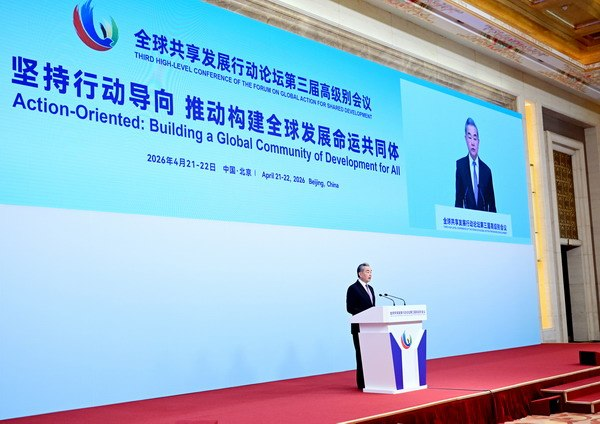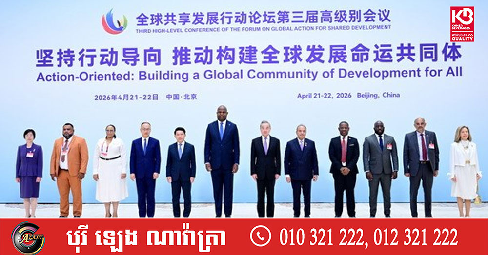(ប៉េកាំង)៖ ថ្ងៃទី ២២ ខែមេសា ឆ្នាំ ២០២៦ កិច្ចប្រជុំកម្រិតខ្ពស់លើកទី៣ នៃវេទិកាស្តីពីសកម្មភាពសកលសម្រាប់ ការចែករំលែកការអភិវឌ្ឍបានបើកនៅទីក្រុងប៉េកាំង។ លោក Wang Yi សមាជិកការិយាល័យនយោបាយ នៃគណៈកម្មាធិការមជ្ឈិមបក្សកុម្មុយនីស្តចិន និងជាប្រធានការិយាល័យគណៈកម្មការកិច្ចការបរទេស នៃគណៈកម្មាធិការមជ្ឈិមបក្សកុម្មុយនីស្តចិន បានអញ្ជើញចូលរួមពិធីបើក ព្រមទាំងថ្លែងសុន្ទរកថា។