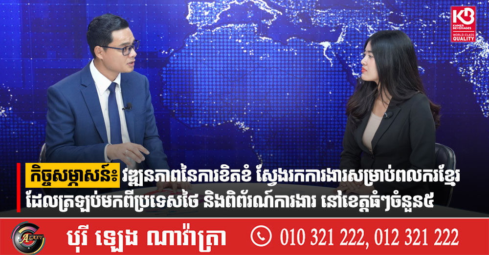 កិច្ចសម្ភាសន៍៖ វឌ្ឍនភាពនៃការខិតខំ ស្វែងរកការងារសម្រាប់ពលករខ្មែរ ដែលត្រឡប់មកពីប្រទេសថៃ និងពិព័រណ៍ការងារ នៅខេត្តធំៗចំនួន៥