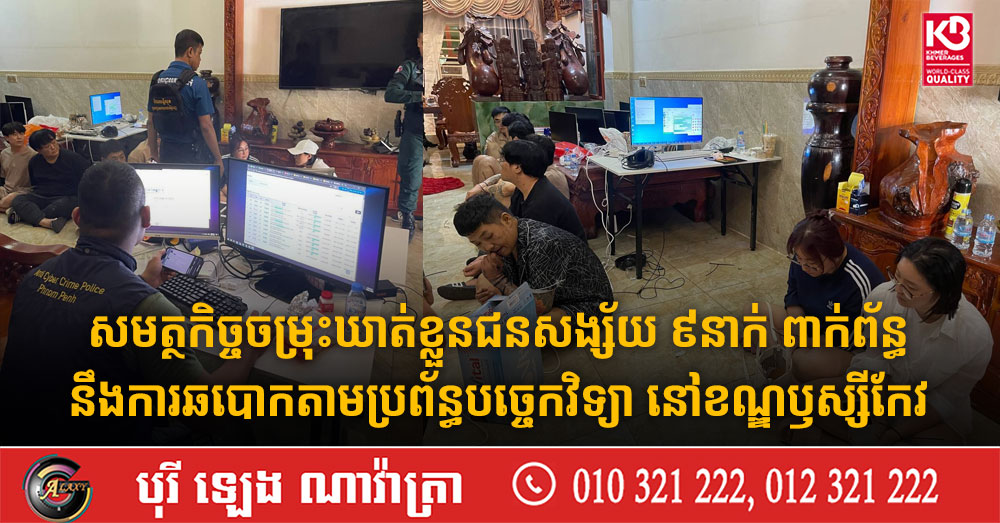 សមត្ថកិច្ចចម្រុះឃាត់ខ្លួនជនសង្ស័យ ៩នាក់ ពាក់ព័ន្ធនឹងការឆបោកតាមប្រព័ន្ធបច្ចេកវិទ្យា នៅខណ្ឌឫស្សីកែវ