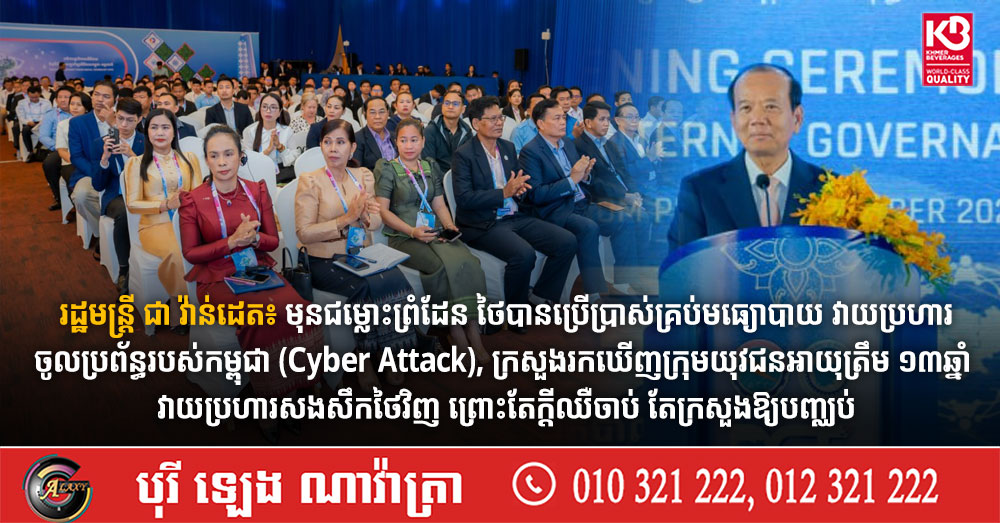 រដ្ឋមន្ត្រី ជា វ៉ាន់ដេត៖ មុនជម្លោះព្រំដែន ថៃបានប្រើប្រាស់គ្រប់មធ្យោបាយ វាយប្រហារចូលប្រព័ន្ធរបស់កម្ពុជា (Cyber Attack), ក្រសួងរកឃើញក្រុមយុវជនអាយុត្រឹម ១៣ឆ្នាំ វាយប្រហារសងសឹកថៃវិញ ព្រោះតែក្តីឈឺចាប់ តែក្រសួងឱ្យបញ្ឈប់ (Video inside)