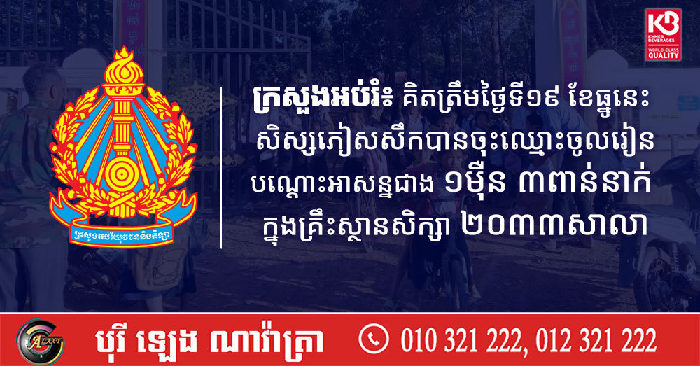 ក្រសួងអប់រំ៖ គិតត្រឹមថ្ងៃទី១៩ ខែធ្នូនេះ សិស្សភៀសសឹកបានចុះឈ្មោះចូលរៀនបណ្តោះអាសន្នជាង ១ម៉ឺន ៣ពាន់នាក់ ក្នុងគ្រឹះស្ថានសិក្សា ២០៣៣សាលា
