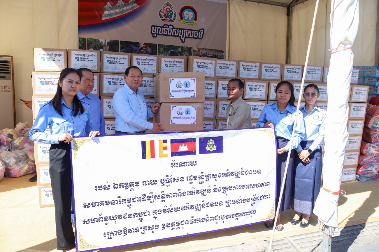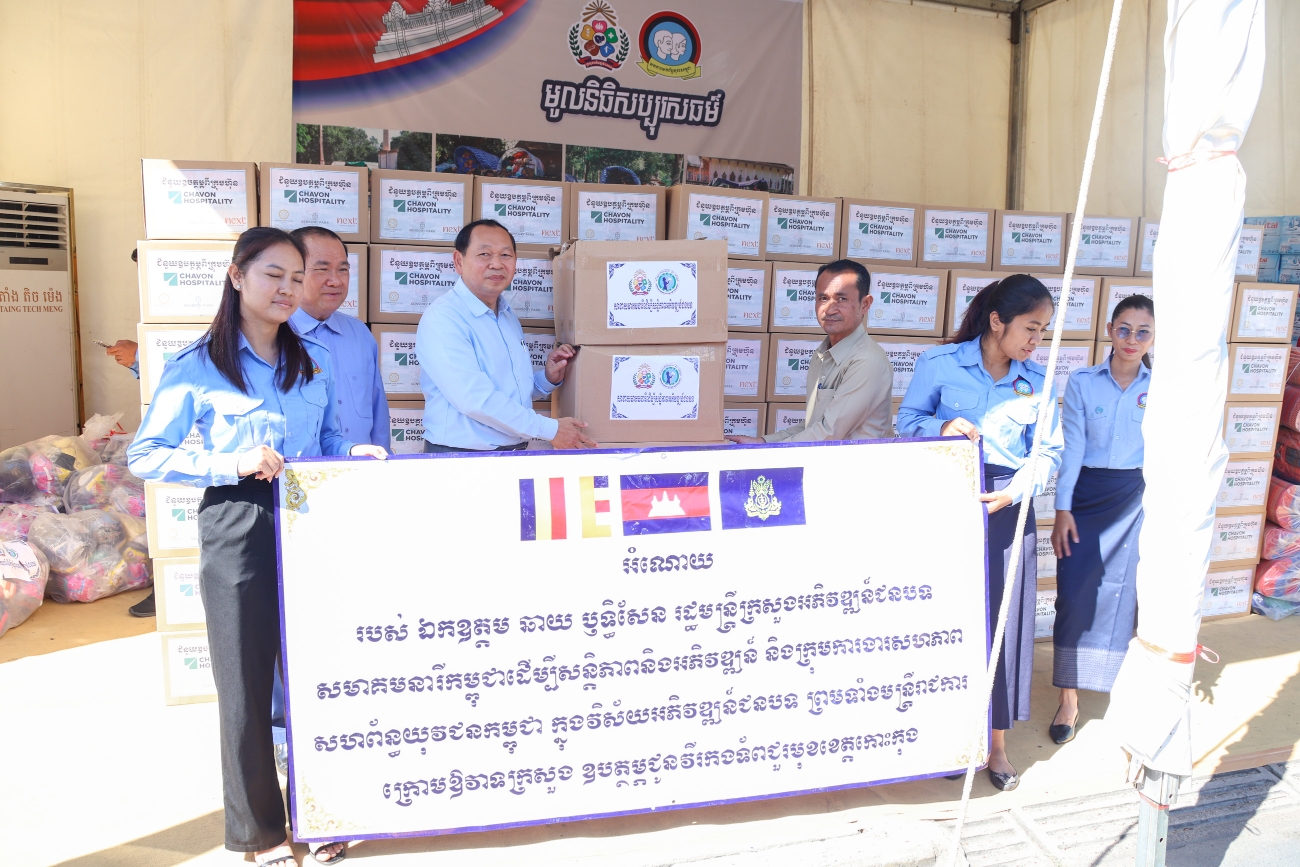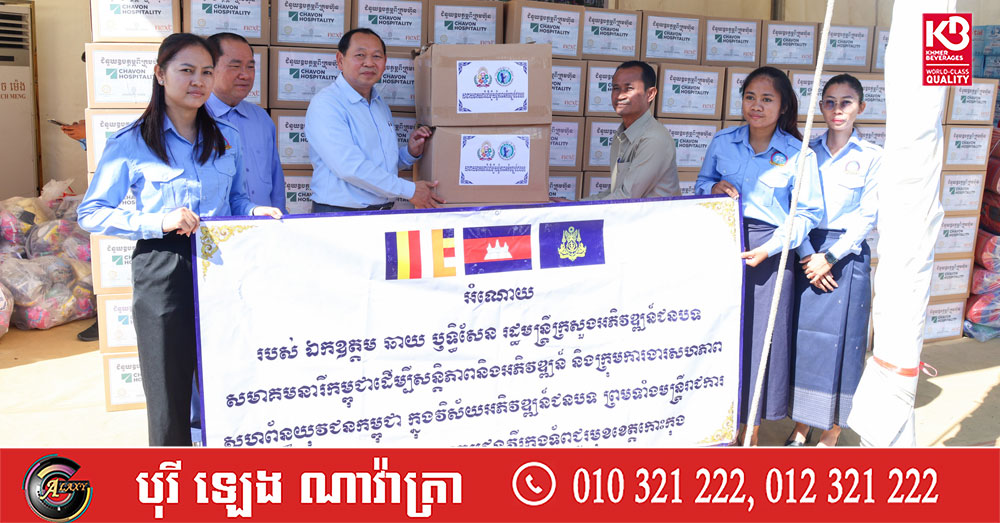 (ភ្នំពេញ)៖ លោក ឆាយ ឫទ្ធិសែន រដ្ឋមន្ដ្រីក្រសួងអភិវឌ្ឍន៍ជនបទ និងជាសមាជិកគណៈអចិន្ដ្រៃយ៍គណៈកម្មាធិការកណ្ដាលសហភាពសហព័ន្ធយុវជនកម្ពុជា បានប្រគល់អំណោយដែលឧបត្ថម្ភដោយសមាគមនារីកម្ពុជាដើម្បីសន្តិភាព និងអភិវឌ្ឍន៍នៃក្រសួងអភិវឌ្ឍន៍ជនបទ និងសប្បុរសជននានា ចូលរួមក្នុងមូលនិធិសប្បុរសធម៌ ដែលរៀបចំដោយក្រុមការងារសហភាពសហព័ន្ធយុវជនកម្ពុជា ក្នុងវិស័យអភិវឌ្ឍន៍ជនបទ សម្រាប់យកទៅឧបត្ថម្ភគាំទ្រដល់វីរកងទ័ពជួរមុខក្នុងខេត្តកោះកុង តតាំងនិងឈ្លានពានរបស់ទាហានឈ្លានពានសៀម តាមរយៈមន្ទីអភិវឌ្ឍន៍ជនខេត្តកោះកុង។