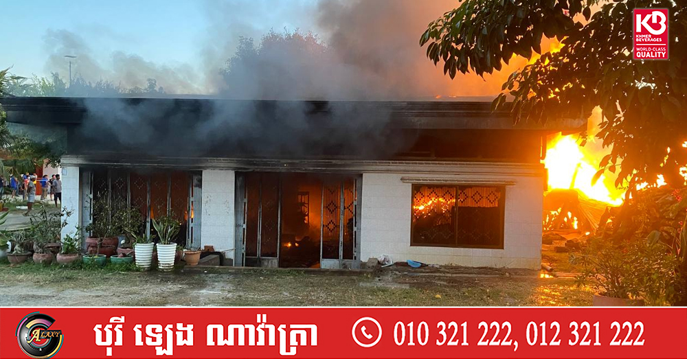 (កំពង់ស្ពឺ)៖ នៅវេលាម៉ោង៦ល្ងាច ថ្ងៃទី១៩ ខែធ្នូ ឆ្នាំ២០២៥នេះ មានករណីអគ្គិភ័យមួយឆាបឆេះផ្ទះប្រជាពលរដ្ឋមួយកន្លែងយ៉ាងសន្ធោសន្ធៅ នៅភូមិព្រៃស្លឹក ក្រុងច្បារមន ខេត្ត កំពង់ស្ពឺ ។