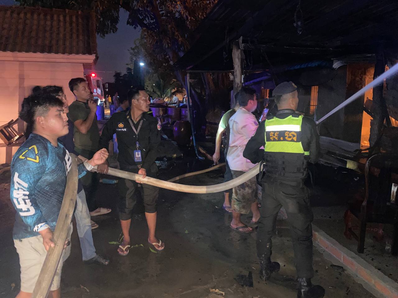 អគ្គិភ័យឆេះផ្ទះពលរដ្ឋមួយកន្លែង នៅក្រុងច្បារមន ខេត្តកំពង់ស្ពឺ, កម្លាំងអាវុធហត្ថ និងនគរបាលអន្ដរាគមន៍សង្គ្រោះ