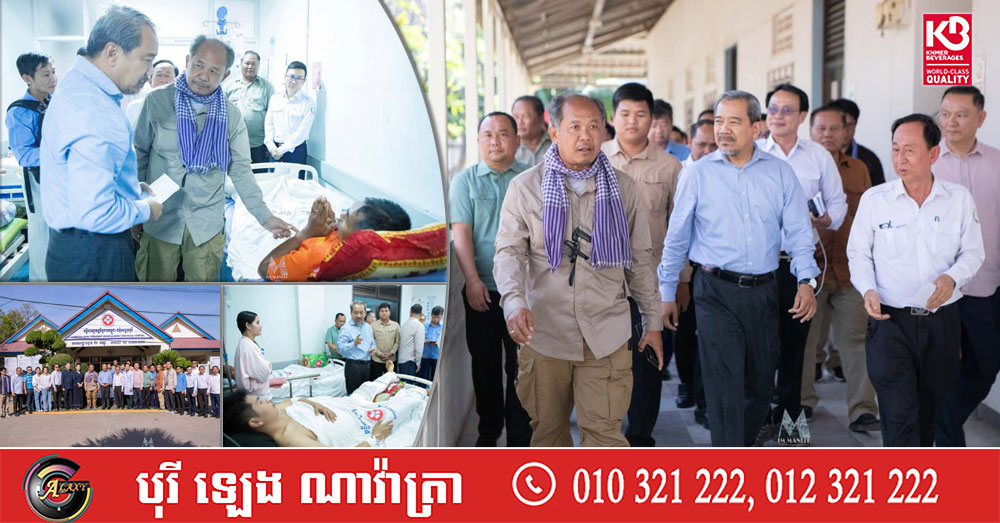 ទេសរដ្ឋមន្ត្រី កែវ រ៉េមី ចុះសួរសុខទុក្ខវីរកងទ័ព ដែលរងរបួសសម្រាកព្យាបាល នៅមន្ទីរពេទ្យមិត្តភាពកម្ពុជា-ជប៉ុន មង្គលបូរី ខេត្តបន្ទាយមានជ័យ