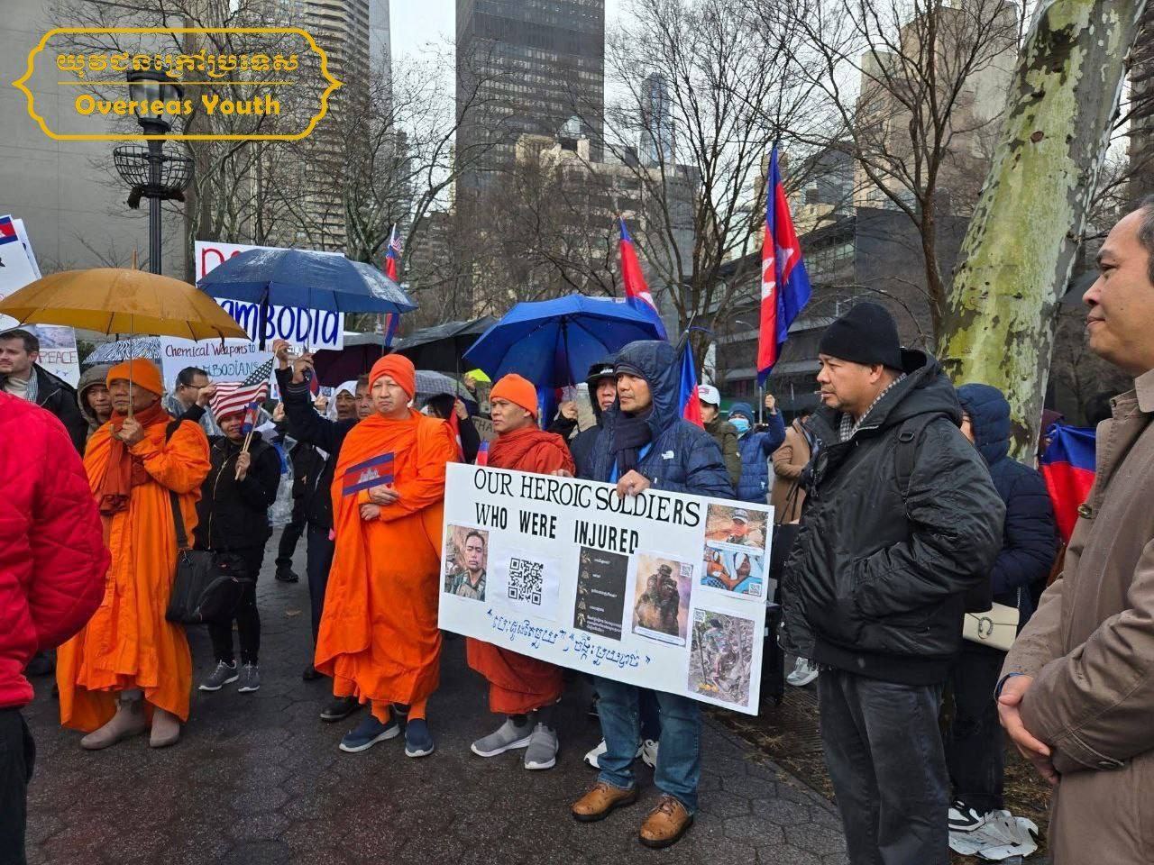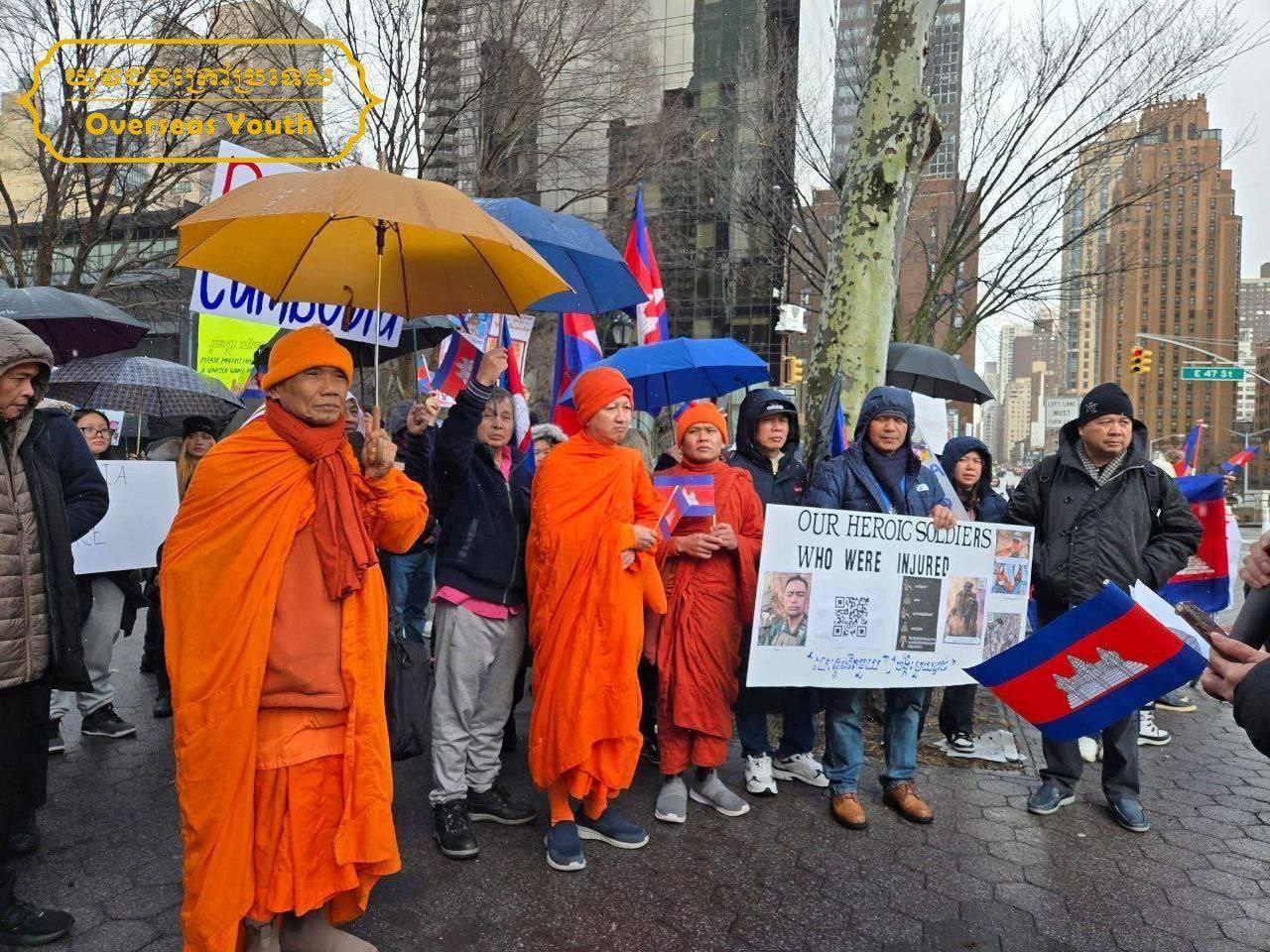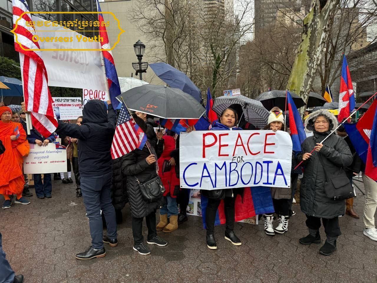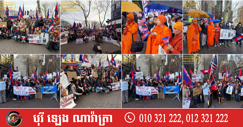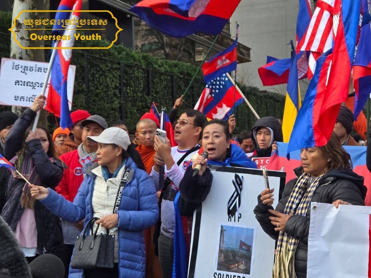 (អាមេរិក)៖ ប្រជាពលរដ្ឋខ្មែរ-អាមេរិកកាំង មកពី រដ្ឋម៉ាសាឈូសេត, រដ្ឋផេនស៊ីលវ៉េនញ៉ា, រដ្ឋវើជីនៀ, រដ្ឋធានីវ៉ាស៊ីងតោនឌី.ស៊ី, បុរីញូវយ៉ក និងរដ្ឋតិចសាសយ៉ាងច្រើនកុះករ នៅថ្ងៃទី១៩ ខែធ្នូ ឆ្នាំ២០២៥ បានជួបជុំជាគ្នានៅមុខទីស្នាក់ការកណ្តាលអង្គការសហប្រជាជាតិ (U.N Headquarter) ធ្វើការសម្តែងមតិ និងបានដាក់ញត្តិប្រឆាំង ប្រទេសថៃដែលបាន និងកំពុងឈ្លានពាន ដោយប្រើកម្លាំងយោធាមកលើអធិបតេយ្យ និងបូរណភាពទឹកដីកម្ពុជា ដោយរំលោភទាំងស្រុងលើច្បាប់អន្តរជាតិ រដ្ឋធម្មនុញ្ញអង្គការសហប្រជាជាតិ និងកិច្ចព្រមព្រៀងសន្តិភាពទីក្រុងកូឡាឡាំពួរ៕