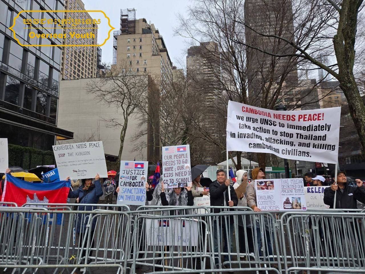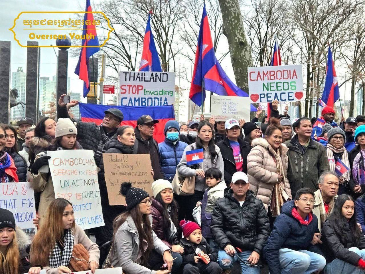 ប្រជាពលរដ្ឋខ្មែរ-អាមេរិកកាំង ជួបជុំជាគ្នានៅមុខទីស្នាក់ការកណ្តាលអង្គការសហប្រជាជាតិ ក្នុងទីក្រុងញូវយ៉ក ដាក់ញត្តិប្រឆាំងប្រទេសថៃ ដែលឈ្លានពានកម្ពុជា រំលោភទាំងស្រុងលើច្បាប់អន្តរជាតិ