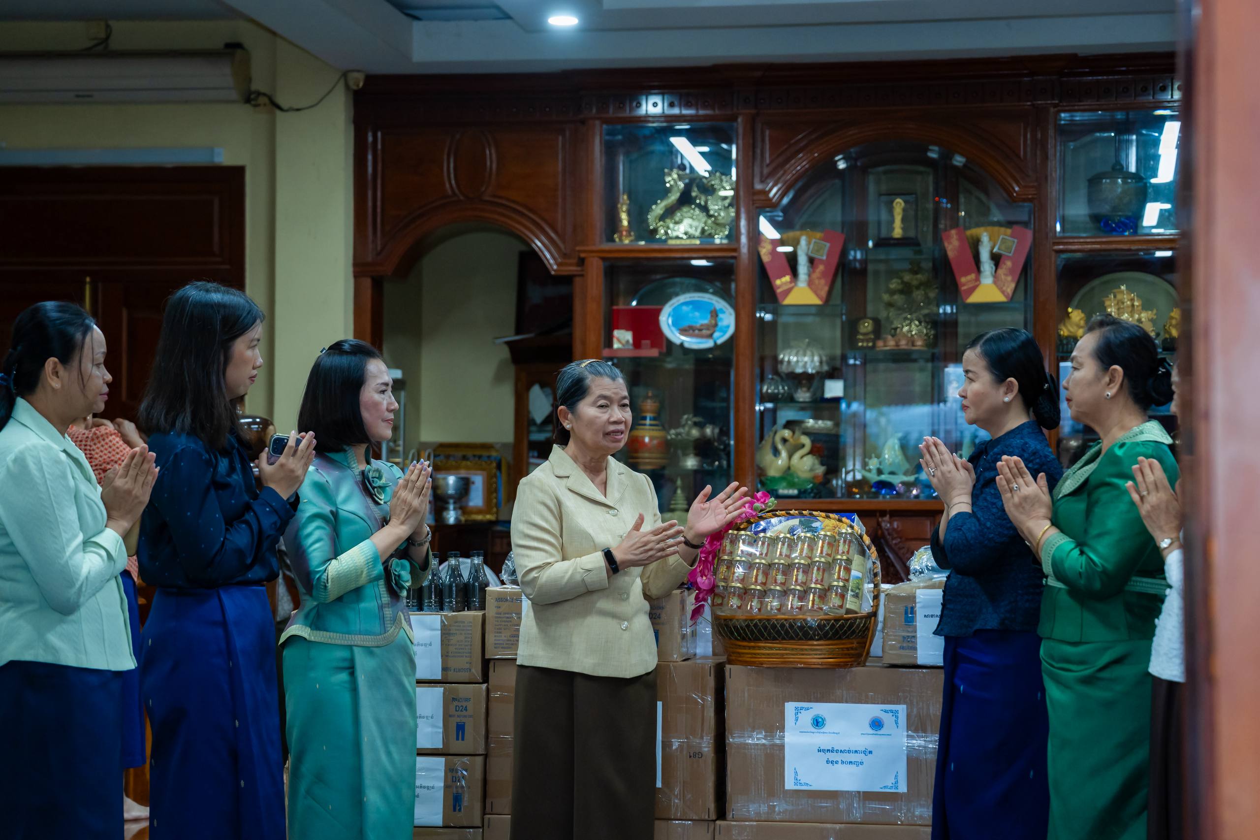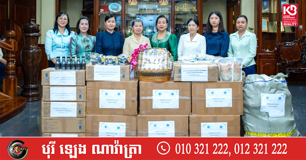 (ភ្នំពេញ)៖ នៅថ្ងៃទី១៨ ខែធ្នូ ឆ្នាំ២០២៥ លោកស្រី ប្រាក់ ច័ន្ទណយ រដ្ឋលេខាធិការ និងជាប្រធានសាខាសមាគមនារីកម្ពុជាដើម្បីសន្តិភាព និងអភិវឌ្ឍន៍ ក្រសួងប្រៃសណីយ៍និងទូរគមនាគមន៍ អនុប្រធាន និងសមាជិកា គណៈកម្មការសមាគម បាននាំយកនូវគ្រឿងឧបភោគបរិភោគ សម្ភារៈ និងថវិកា គោរពជូនតាមរយ: សម្ដេចកិត្តិសង្គហបណ្ឌិត ម៉ែន សំអន ឧត្តមប្រឹក្សាផ្ទាល់ព្រះមហាក្សត្រ និងជាប្រធានសមាគមនារីកម្ពុជាដើម្បីសន្តិភាព និងអភិវឌ្ឍន៍។