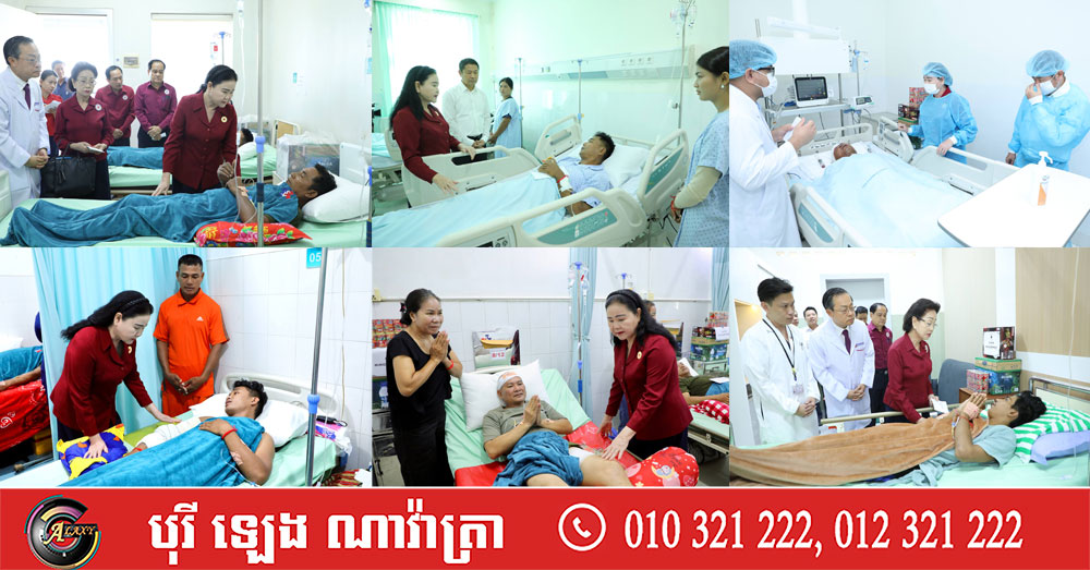 (ភ្នំពេញ)៖ នៅព្រឹកថ្ងៃសៅរ៍ ទី២០ ខែធ្នូ ឆ្នាំ២០២៥នេះ សម្តេចកិត្តិព្រឹទ្ធបណ្ឌិត ប៊ុន រ៉ានី ហ៊ុនសែន អ្នកម្ដាយមនុស្សធម៌ បានអញ្ជើញបន្តចុះសួរសុខទុក្ខវីរយុទ្ធជនការពារបូរណភាពទឹកដី ដែលរងរបួសកំពុងព្យាបាលនៅតាមមន្ទីរពេទ្យនៅរាជធានីភ្នំពេញ រួមមាន មន្ទីរពេទ្យមិត្តភាពខ្មែរ-សូវៀត មន្ទីរពេទ្យមិត្តភាពកម្ពុជា-ចិន ព្រះកុសុមៈ មន្ទីរពេទ្យកាល់ម៉ែត មន្ទីរពេទ្យព្រះកេតុមាលា និងមន្ទីរពេទ្យព្រះអង្គឌួង។