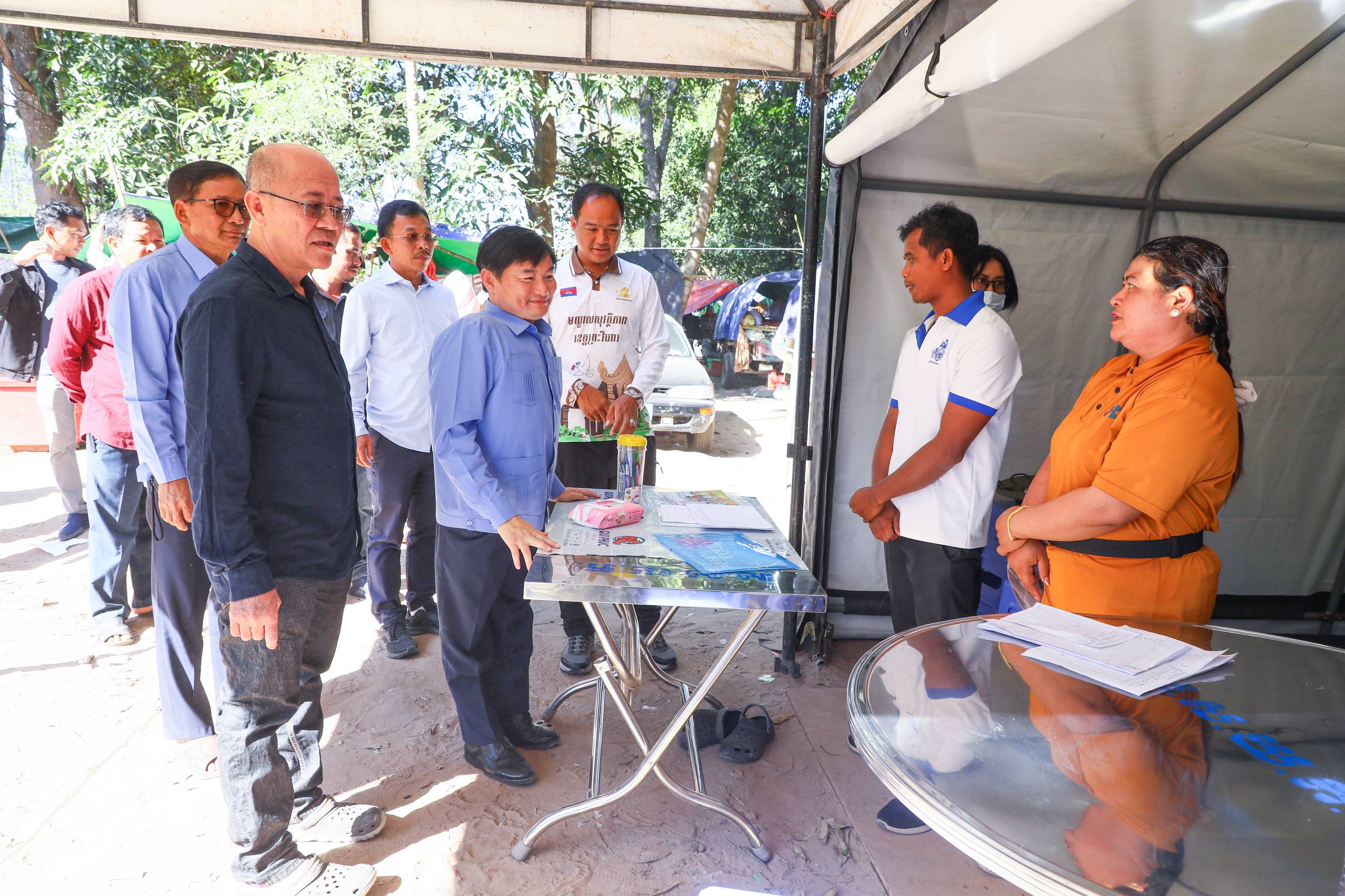 (ព្រះវិហារ)៖ នាព្រឹកថ្ងៃទី២០ ខែធ្នូ ឆ្នាំ២០២៥នេះ បន្ទាប់ពីបានប្រគល់អំណោយជូនរដ្ឋបាលខេត្តព្រះវិហារ លោក ហេង សួរ រដ្ឋមន្ត្រីក្រសួងការងារ និងបណ្ដុះបណ្ដាលវិជ្ជាជីវៈ រួមជាមួយ លោក គីម រិទ្ធី អភិបាលនៃគណៈអភិបាលខេត្តព្រះវិហារ និងសហការីបានចុះសួរសុខទុក្ខប្រជាពលរដ្ឋភៀសសឹកមកពីស្រុកជាំក្សាន្ត បាននាំយកអំណោយរបស់ថ្នាក់ដឹកនាំក្រសួង មន្រ្តីរាជការ សប្បុរសជន ម្ចាស់រោងចក្រ សហគ្រាស ក្រុមហ៊ុន ថ្នាក់ដឹកនាំសហជីព បងប្អូនកម្មករនិយោជិត ដែលមានជាអំណោយជាថវិកា និងសម្ភារគ្រឿងឧបភោគបរិភោគ សម្រាប់ផ្តល់ជូនបងប្អូនប្រជាពលរដ្ឋភៀសសឹកចំនួន ២ពាន់គ្រួសារ ស្មើនឹង១២ ០០០នាក់ នៅស្រុកត្បែងមានជ័យ ខេត្តព្រះវិហារ។