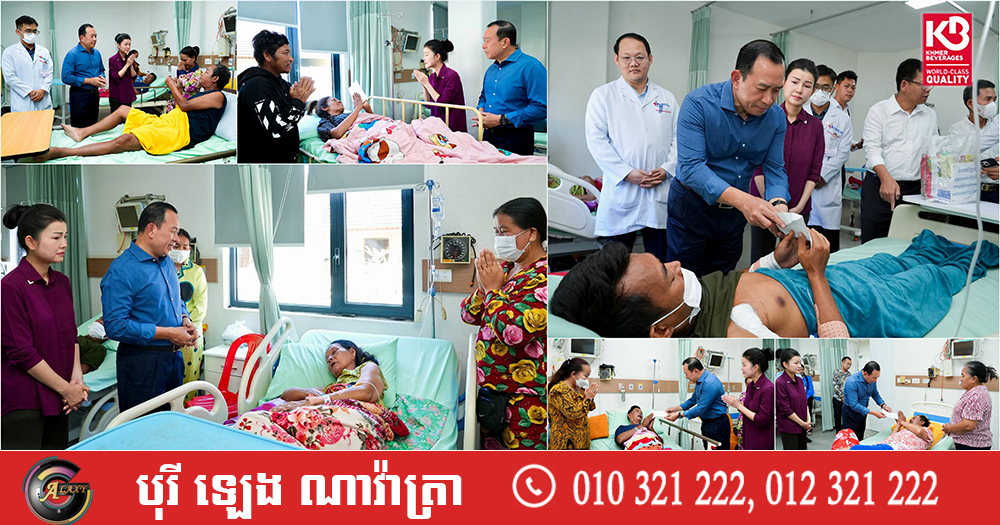 រដ្ឋមន្ត្រី ហួត ហាក់ និងភរិយា អញ្ជើញចុះសួរសុខទុក្ខកងទ័ពជួរមុខរងរបួស ដែលសម្រាកព្យាបាលនៅមន្ទីរពេទ្យមិត្តភាពខ្មែរ-សូវៀត