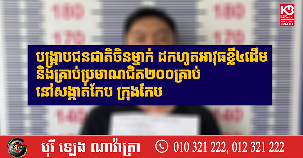 បង្ក្រាបជនជាតិចិនម្នាក់ ដកហូតអាវុធខ្លី៤ដើម និងគ្រាប់ប្រមាណជិត២០០គ្រាប់ នៅសង្កាត់កែប ក្រុងកែប