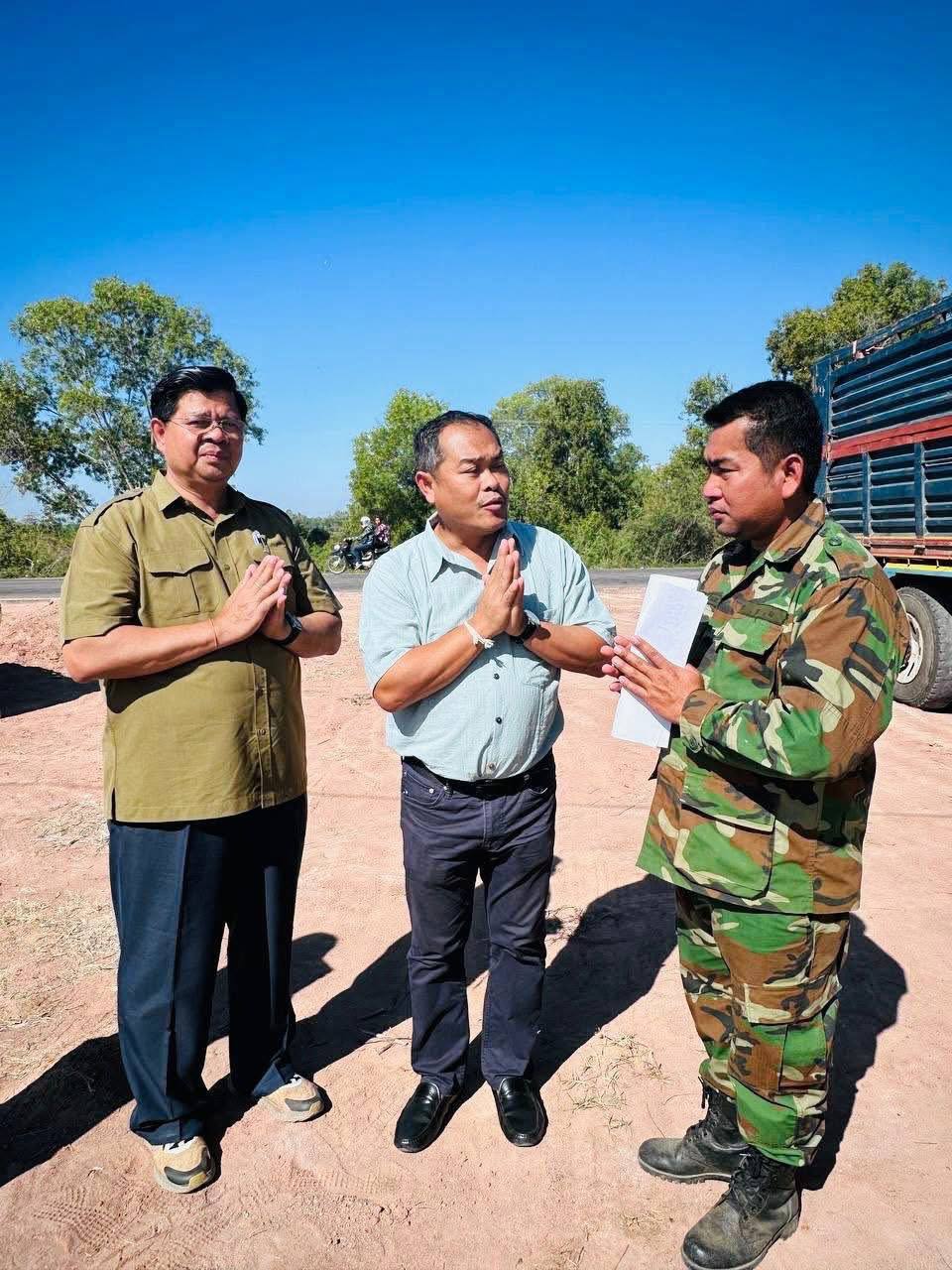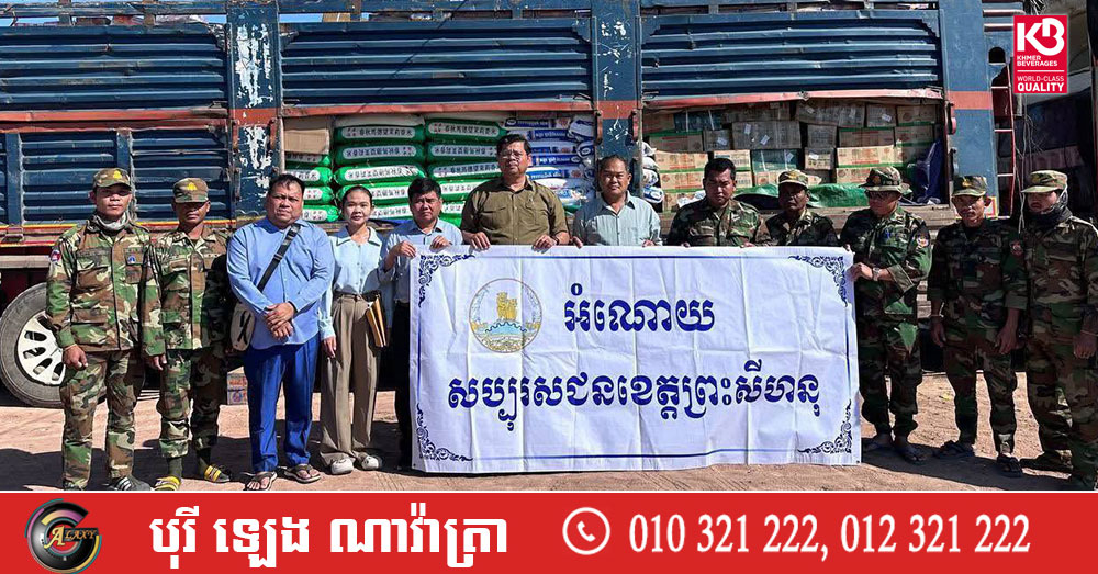 (ព្រះសីហនុ)៖ លោក នៃ គង់ អភិបាលរងខេត្ត តំណាងលោក ម៉ាង ស៊ីណេត អភិបាលខេត្តព្រះសីហនុ នៅថ្ងៃទី២១ ខែធ្នូ ឆ្នាំ២០២៥ បានដឹកនាំក្រុមការងារ នាំយកអំណោយជាស្បៀងអាហារ គ្រឿងឧបភោគបរិភោគ ថ្នាំសង្កូវ និងសម្ភារប្រើប្រាស់ផ្សេងៗទៀត ដែលបានមកពីការចូលរួមបរិច្ចាគរបស់ប្រជាពលរដ្ឋនៅខេត្តព្រះសីហនុ ជូនដល់វីរកងទ័ពខ្មែរនៅសមរភូមិមុខ ដែលកំពុងការពារបូរណភាពដែនដីខ្មែរ នៅទិសខេត្តឧត្តរមានជ័យ។