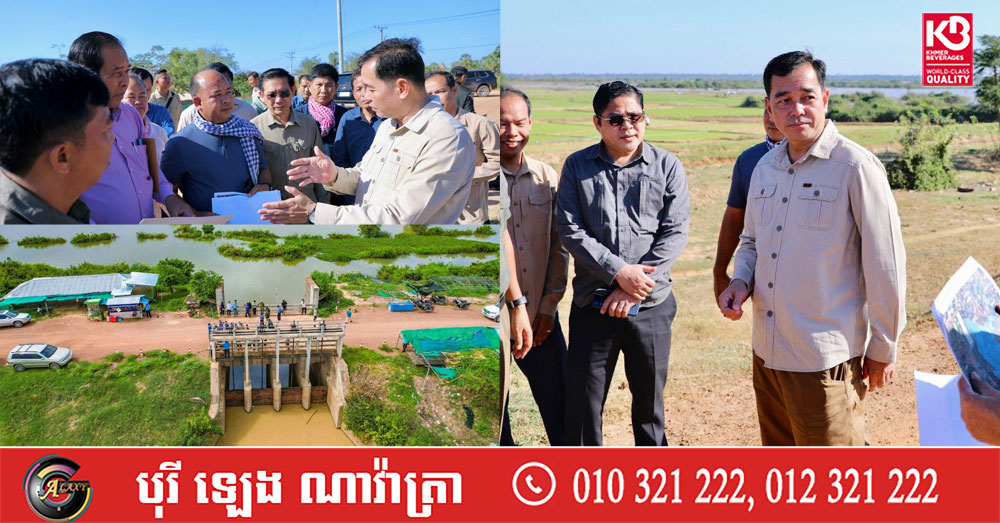 អភិបាលខេត្តកំពង់ចាម ចុះពិនិត្យស្ថានភាពទំនប់តំបន់ ក្នុងស្រុកជើងព្រៃ