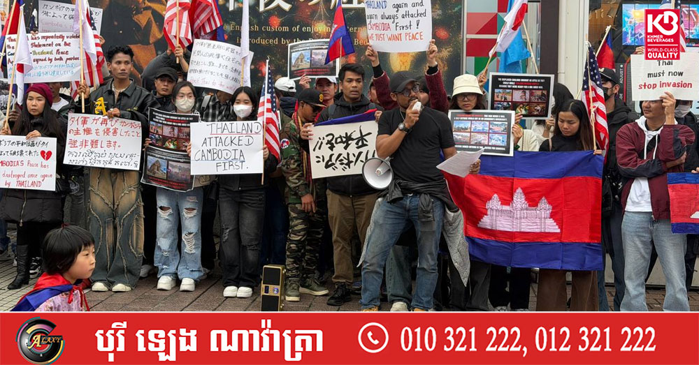 (ជប៉ុន)៖ សហគមន៍ខ្មែរ ពលករ និងនិស្សិតខ្មែរដែលកំពុងស្នាក់នៅ ធ្វើការ និងសិក្សានៅប្រទេសជប៉ុន ប្រមាណ ៣០០នាក់ នៅថ្ងៃទី២១ ខែធ្នូ ឆ្នាំ២០២៥នេះ បានបន្តប្រមូលផ្តុំគ្នា ចំនួន ៣ទីតាំង នៅទីក្រុងតូក្យូ ខេត្តអូសាកា និងខេត្តហ្គិហ្វូ ដើម្បីសម្តែងមតិថ្កោលទោសយ៉ាងដាច់អហង្ការបំផុត ចំពោះទង្វើអមនុស្សធម៌ដ៏សាហាវយង់ឃ្នងរបស់រដ្ឋាភិបាលក្រុងបាងកក និងយោធាថៃ ដែលបានបើកការវាយប្រហារគ្មានរើសគោលដៅ និងប្រើប្រាស់អាវុធគ្រប់ធុន គ្រប់មធ្យោបាយ តាមផ្លូវគោក ផ្លូវអាកាស និងផ្លូវទឹកក្នុងការឈ្លានពានដែនអធិបតេយ្យភាពកម្ពុជា។