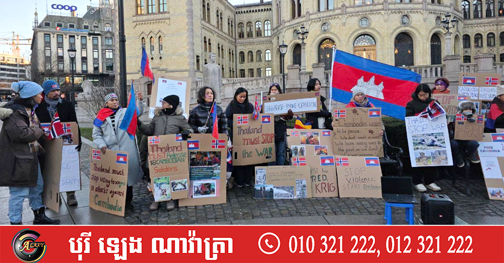 ប្រជាពលរដ្ឋខ្មែរ និងជនជាតិន័រវែស ធ្វើបាតុកម្មអហឹង្សានៅមុខអគារដ្ឋសភានៅទីក្រុងអូស្លូ ប្រទេសន័រវែស ទាមទារឱ្យមានសន្តិភាពសម្រាប់កម្ពុជា