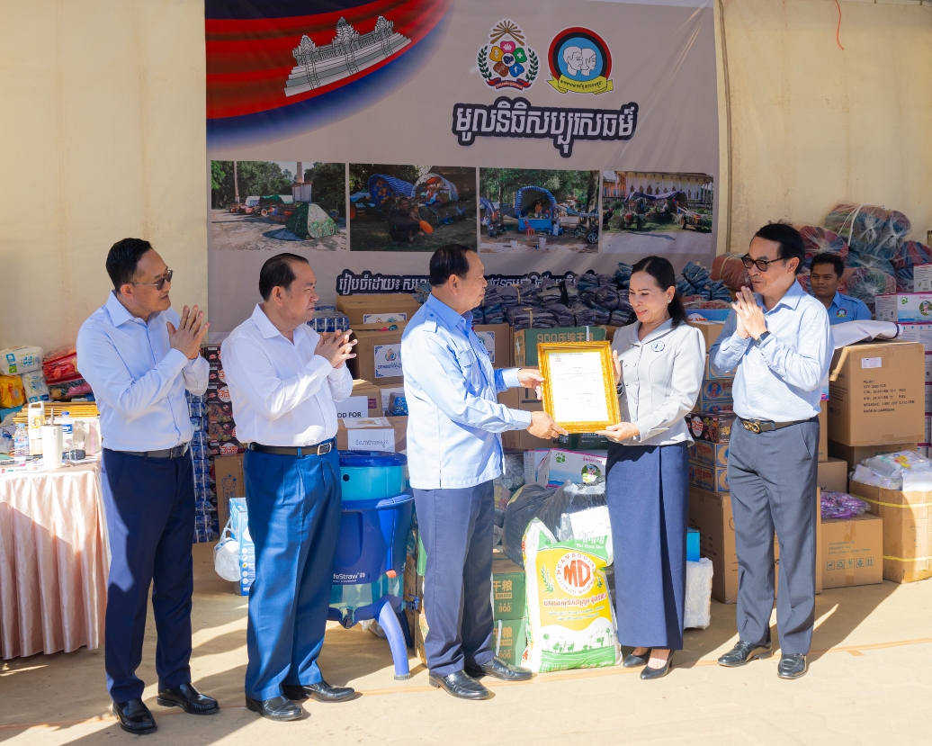 អំណោយដែលបានជួយឧបត្ថម្ភនោះ រួមមាន៖ ១៖ ទឹកបរិសុទ្ធម៉ាក (EM) ចំនួន ១០០កេស, ២៖ អង្ករចំនួន ២ ០០០គីឡូក្រាម និង៣៖ ត្រីខ ១៤កេស ស្មើនឹង ១០០៨កំប៉ុង សម្រាប់យកទៅឧបត្ថម្ភគាំទ្រដល់គ្រួសារវីរកងទ័ពជួមុខ និងប្រជាជនភៀសសឹកកម្ពុជាដែលបានជម្លៀសខ្លួនពីលំនៅដ្ឋាន ហើយកំពុងស្នាក់នៅបណ្ដោះអាសន្ននៅតាមទីតាំងសុវត្ថិភាពនានា ក្នុងអំឡុងពេលនៃការឈ្លានពានរបស់ទាហានឈ្លានពានសៀម មកលើដែនអធិបតេយ្យភាព និងបូរណភាពដែនដីនៃព្រះរាជាណាចក្រកម្ពុជា។