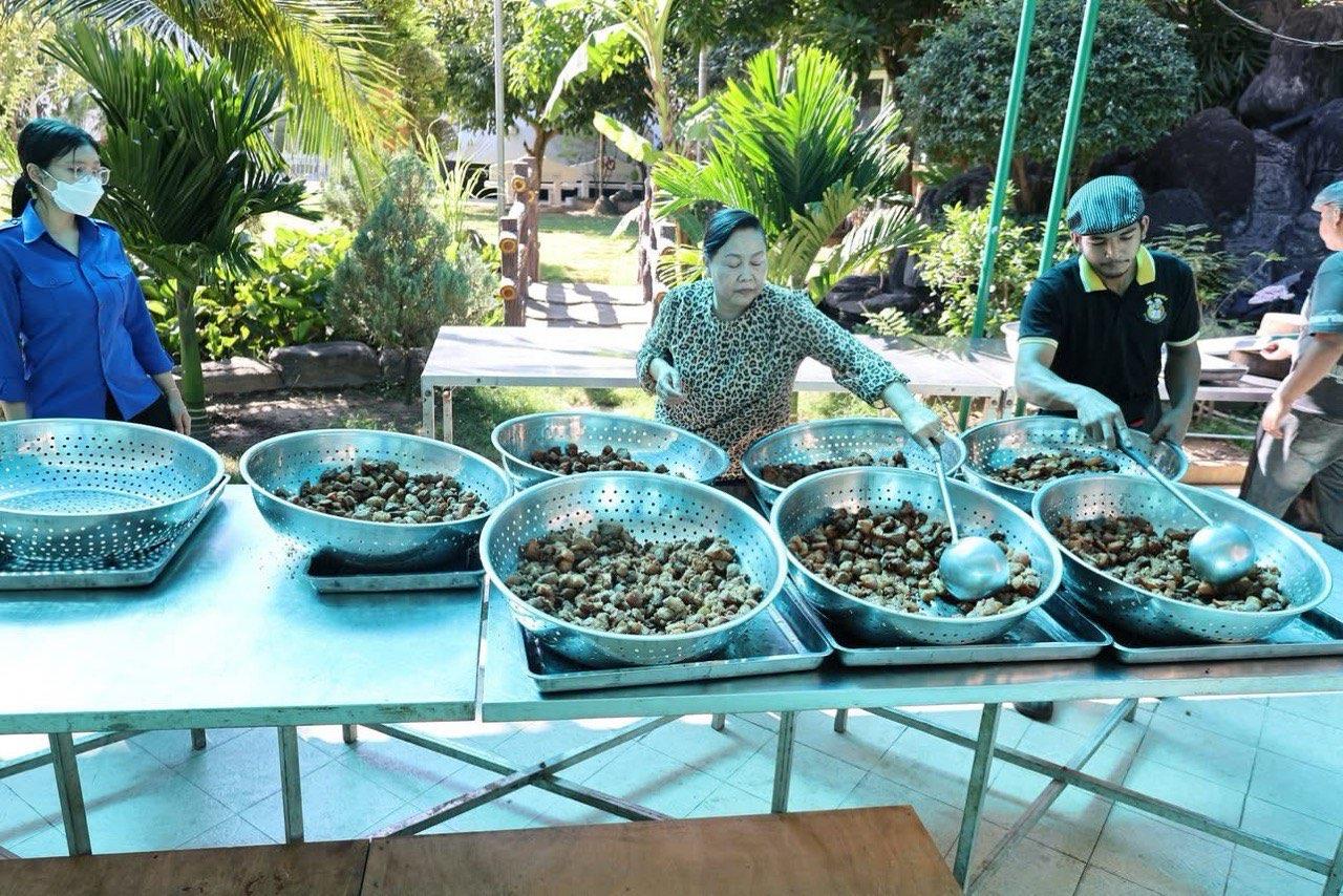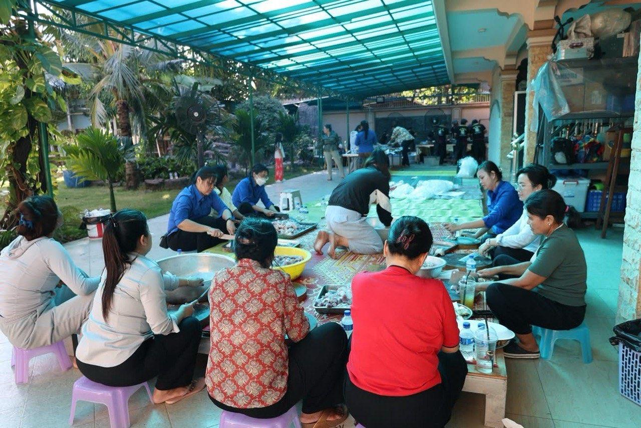 លោកបណ្ឌិត ជីវ កេង រួមជាមួយក្រុមគ្រួសារ និងសប្បុរសជន រៀបចំគ្រឿងឧបភោគបរិភោគ យកទៅចែកជូនដល់វីរៈកងទ័ពជួរមុខ និងជនភៀសសឹក