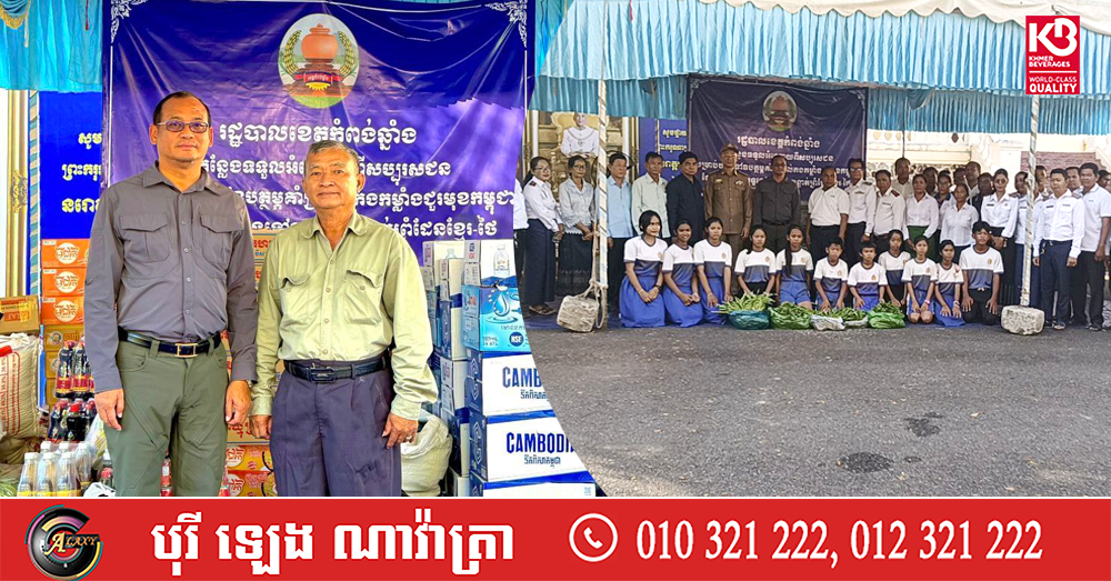 នៅទីតាំងកន្លែងទទួលស្បៀង និងសម្ភារផ្សេងៗក្នុងសាលាខេត្តកំពង់ឆ្នាំង ក្រុមការងាររដ្ឋបាលខេត្តដែលជាអ្នកទទួលរឿងឧបភោគបរិភោគពីសិស្សានុសិស្សនិងលោកគ្រូ -អ្នកគ្រូ បានឱ្យដឹងថា អំណោយទាំងអស់ខាងលើនេះបានឧបត្ថម្ភពីលោក-លោកស្រីនាយក-នាយករងសាលាចំនួន១៤សាលា នៅក្នុងស្រុករលាប្អៀរ និងស្រុកទឹកផុស ដើម្បីត្រៀមទុកសម្រាប់ដឹកយកទៅឧបត្ថម្ភដល់វីរកងទ័ព និងជនភៀសសឹកនៅតាមបណ្ដោយព្រំដែនខ្មែរ-ថៃ ដែលកំពុ ងទទួលរងនូវសង្គ្រាមឈ្លានពានពីសំណាក់ចោរសៀម។