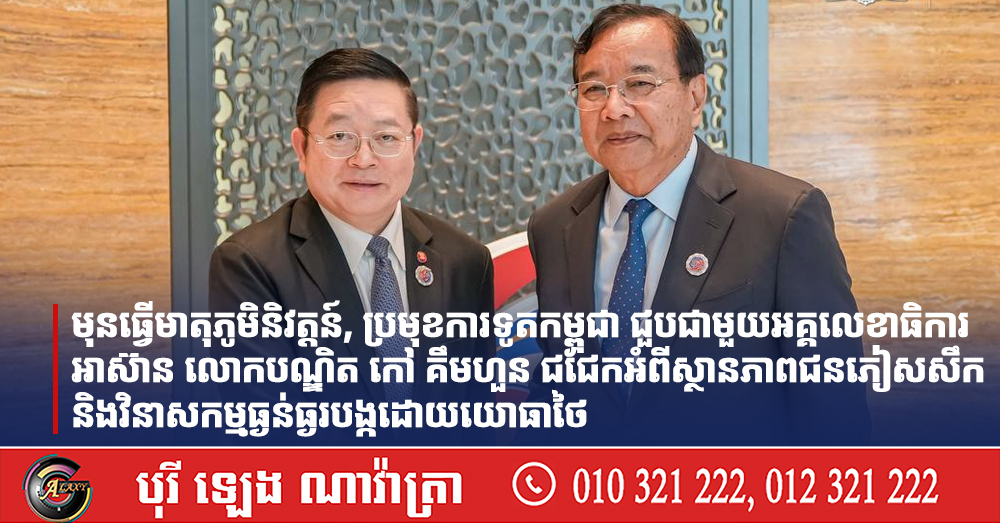 មុនធ្វើមាតុភូមិនិវត្តន៍, ប្រមុខការទូតកម្ពុជា ជួបជាមួយអគ្គលេខាធិការអាស៊ាន លោកបណ្ឌិត កៅ គឹមហួន ជជែកអំពីស្ថានភាពជនភៀសសឹក និងវិនាសកម្មធ្ងន់ធ្ងរបង្កដោយយោធាថៃ
