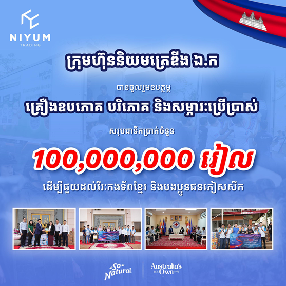សូមជម្រាបថា ក្រុមហ៊ុន និយម ត្រេឌីង ឯ.ក (Niyum Trading Co.,Ltd.) ត្រូវបានបង្កើតឡើងនៅក្នុងឆ្នាំ២០២២ ដែលមានស្ថាបនិក លោក ស៊ុន ហួត។ ហើយមកដល់ពេលបច្ចុប្បន្ន ក្រុមហ៊ុន និយម ត្រេឌីង ឯ.ក បាននាំយកនូវម៉ាក់ផលិតផលល្បីៗជាច្រើនជាបន្តបន្ទាប់ មកក្នុងទីផ្សារប្រទេសកម្ពុជាដូចជា So Natural, Australia’s Own ជាដើម។ អ្វីដែលកាន់តែសំខាន់គឺ បានបង្កើតឱកាសការងាររាប់រយកន្លែង ជូនដល់ពលរដ្ឋខ្មែរ និងបានចូលរួមចំណែកក្នុងការអភិវឌ្ឍសេដ្ឋកិច្ច ប្រទេសជាតិផងដែរ៕