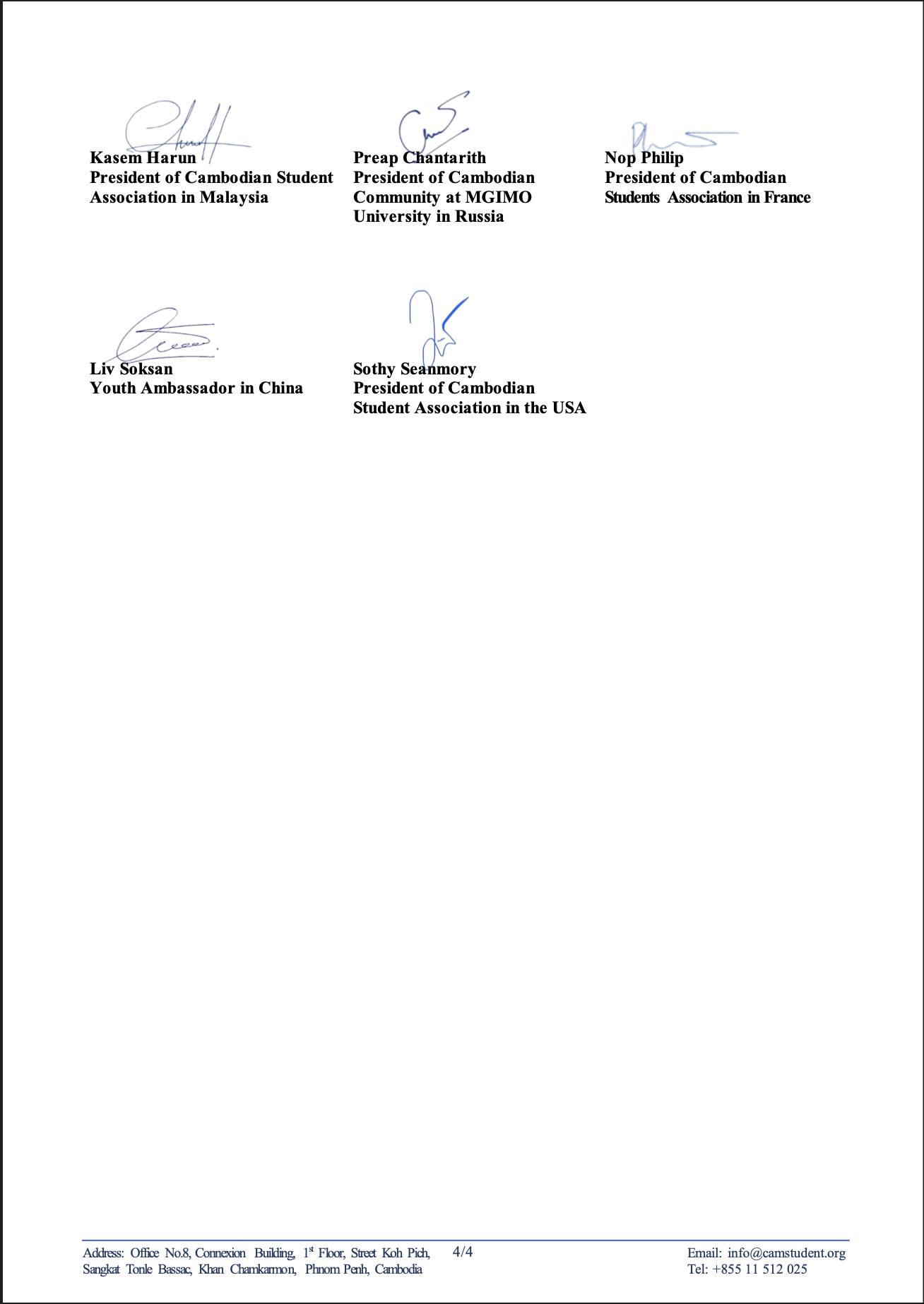 សហព័ន្ធនិស្សិតកម្ពុជានៅបរទេស រួមនឹងសមាគមនិស្សិត សហគមន៍និស្សិត ក្រុមនិស្សិត និងយុវទូតសុឆន្ទៈកម្ពុជាប្រចាំនៅបរទេសទាំង២៤ស្ថាប័ន នឹងបន្តដាក់ញត្តិទៅតាមបណ្តាប្រទេស និងអង្កការអន្តរជាតិជាច្រើនទៀត៕