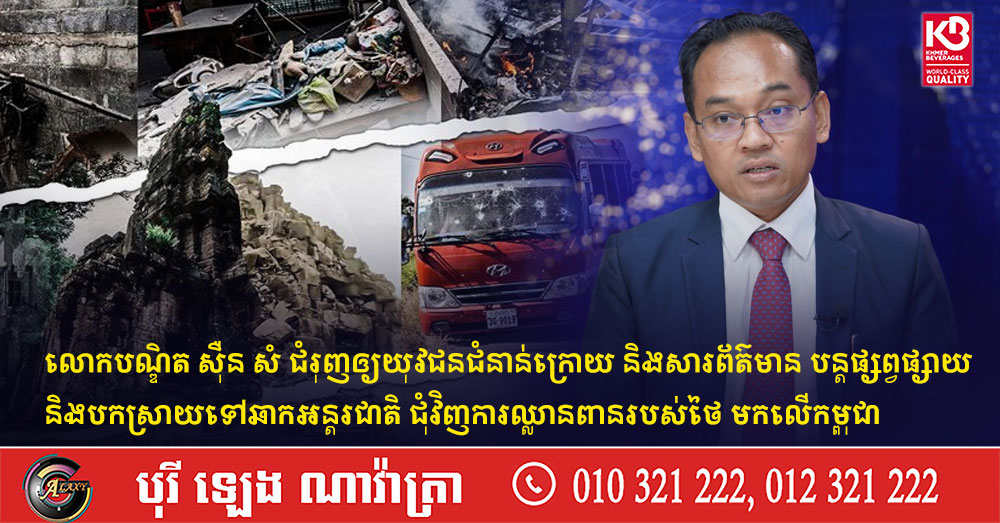 លោកបណ្ឌិត ស៊ឺន សំ ជំរុញឲ្យយុវជនជំនាន់ក្រោយ និងសារព័ត៌មាន បន្តផ្សព្វផ្សាយ និងបកស្រាយទៅឆាកអន្តរជាតិ ជុំវិញការឈ្លានពានរបស់ថៃ មកលើកម្ពុជា (Video inside)