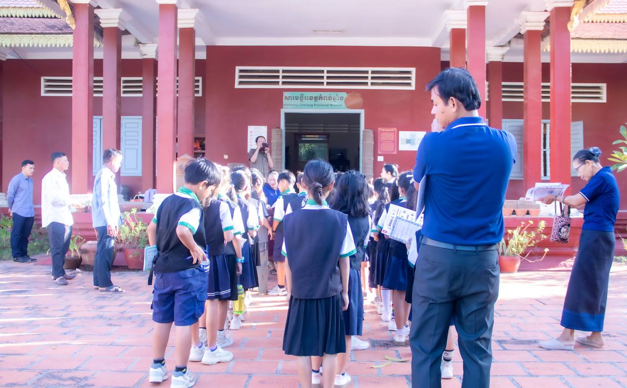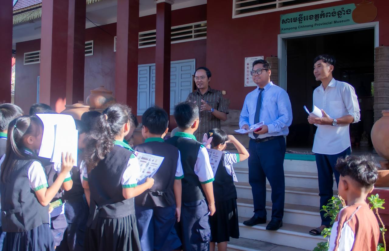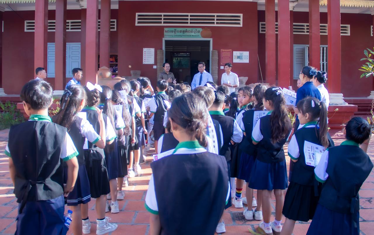 (ភ្នំពេញ)៖ ដំណើរទស្សនកិច្ចសិក្សាទៅកាន់សារមន្ទីរខេត្តកំពង់ឆ្នាំង គឺជាបទពិសោធន៍ដ៏ល្អមួយសម្រាប់សិស្សនៅថ្នាក់ទី៣ និងទី៤ នៃសាលាបឋមសិក្សាគំរូក្រុងខេត្តកំពង់ឆ្នាំង ចំនួន៥០នាក់ នៅព្រឹកថ្ងៃទី២៣ ខែធ្នូ ឆ្នាំ២០២៥។ សិស្សានុសិស្សទាំងអស់ពោរពេញដោយស្នាមញញឹម នៅពេលបានទស្សនានូវវត្ថុបុរាណដ៏សម្បូរបែប ដែលវត្ថុបុរាណទាំងនោះមានប្រវត្តិសាស្រ្តដ៏យូរលង់ណាស់មកហើយ។ ទាំងនេះគឺជាស្នាដៃដ៏អស្ចារ្យរបស់បុព្វបុរសខ្មែរយើង បានបន្សល់ទុកមករហូតដល់បច្ចុប្បន្ន។
