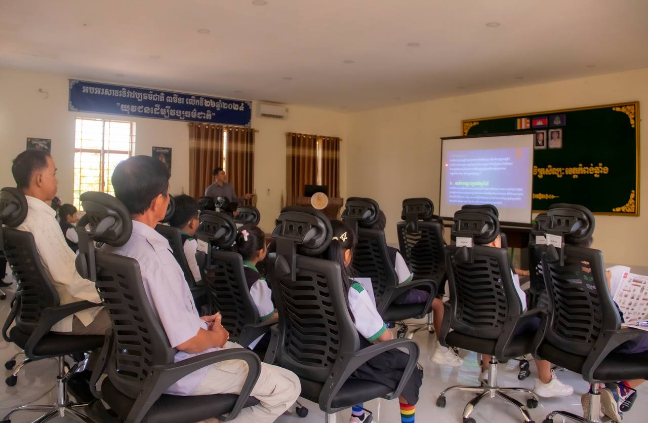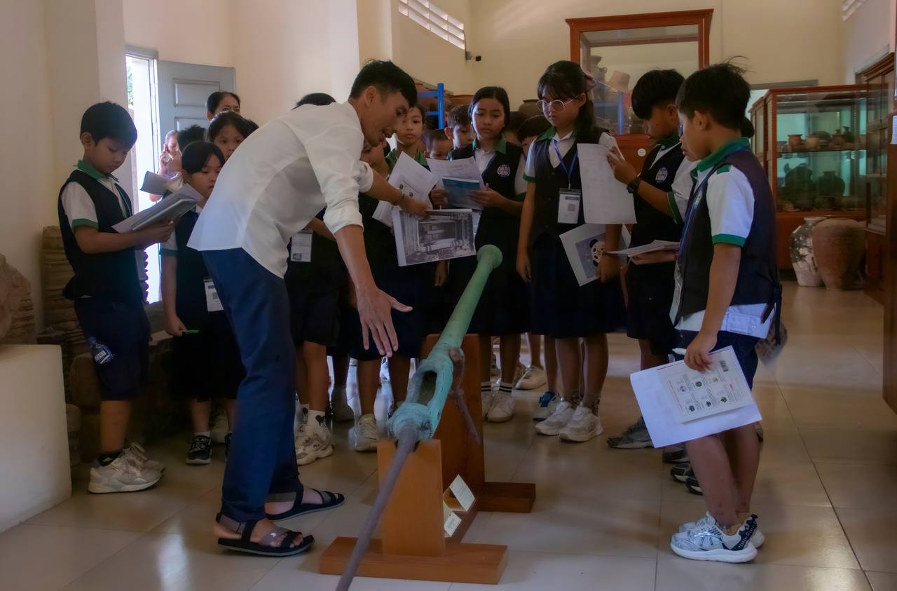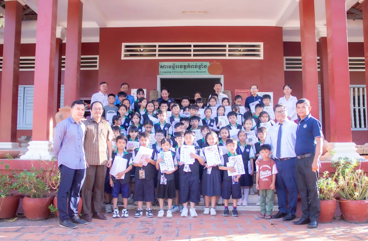 (ភ្នំពេញ)៖ ដំណើរទស្សនកិច្ចសិក្សាទៅកាន់សារមន្ទីរខេត្តកំពង់ឆ្នាំង គឺជាបទពិសោធន៍ដ៏ល្អមួយសម្រាប់សិស្សនៅថ្នាក់ទី៣ និងទី៤ នៃសាលាបឋមសិក្សាគំរូក្រុងខេត្តកំពង់ឆ្នាំង ចំនួន៥០នាក់ នៅព្រឹកថ្ងៃទី២៣ ខែធ្នូ ឆ្នាំ២០២៥។ សិស្សានុសិស្សទាំងអស់ពោរពេញដោយស្នាមញញឹម នៅពេលបានទស្សនានូវវត្ថុបុរាណដ៏សម្បូរបែប ដែលវត្ថុបុរាណទាំងនោះមានប្រវត្តិសាស្រ្តដ៏យូរលង់ណាស់មកហើយ។ ទាំងនេះគឺជាស្នាដៃដ៏អស្ចារ្យរបស់បុព្វបុរសខ្មែរយើង បានបន្សល់ទុកមករហូតដល់បច្ចុប្បន្ន។