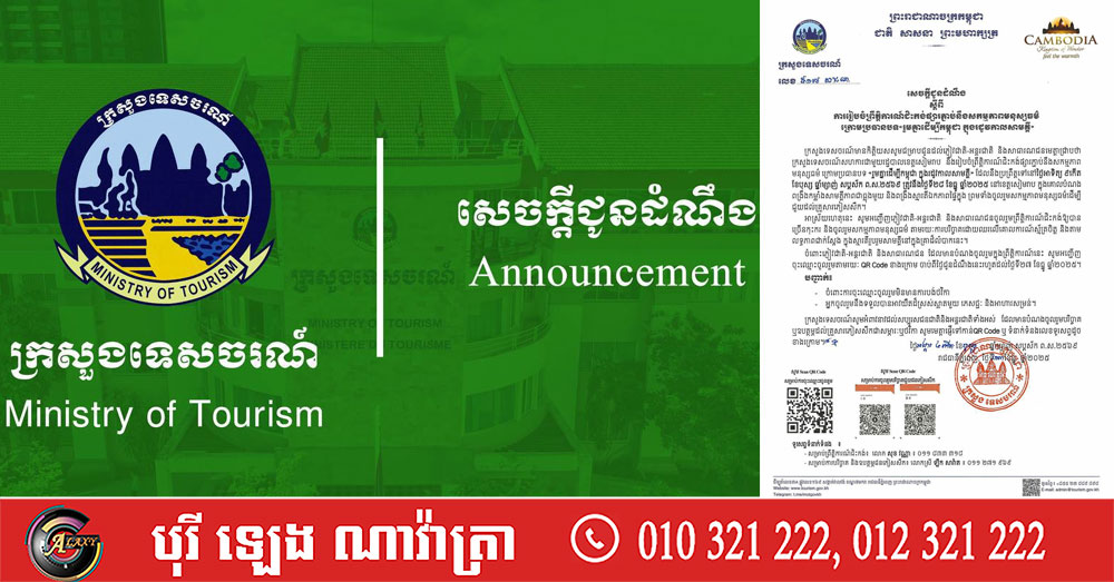 បញ្ជាក់៖ ចំពោះការចុះឈ្មោះចូលរួមមិនមានការបង់ថវិកា។ អ្នកចូលរួមនឹងទទួលបានអាវយឺតដ៏ស្រស់ស្អាតមួយ ភេសជ្ជៈ និងអាហារសម្រន់។ ក្រសួងទេសចរណ៍សូមអំពាវនាវដល់សប្បុរសជនជាតិនិងអន្តរជាតិទាំងអស់ ដែលមានបំណងចូលរួមបរិច្ចាគ ឬឧបត្ថម្ភដល់គ្រួសារភៀសសឹកជាសម្ភារៈឬថវិកា សូមមេត្តាផ្ញើទៅកាន់QR Code ឬ ទំនាក់ទំនងលេខទូរសព្ទដូច ខាងក្រោម៕