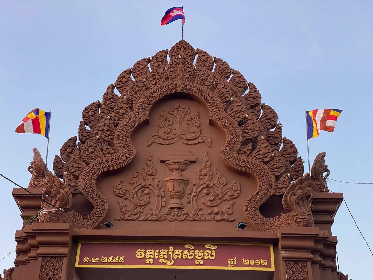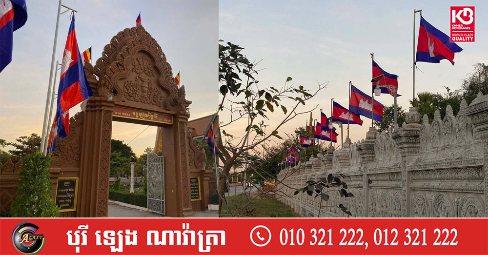វត្តភ្នៀតសិម្ពលី ចងទង់ជាតិកម្ពុជា បង្ហាញពីឆន្ទៈរួបរួមសាមគ្គី និងការពារជាតិ ខណៈប្រទេសកំពុងរងការឈ្លានពានពីថៃ