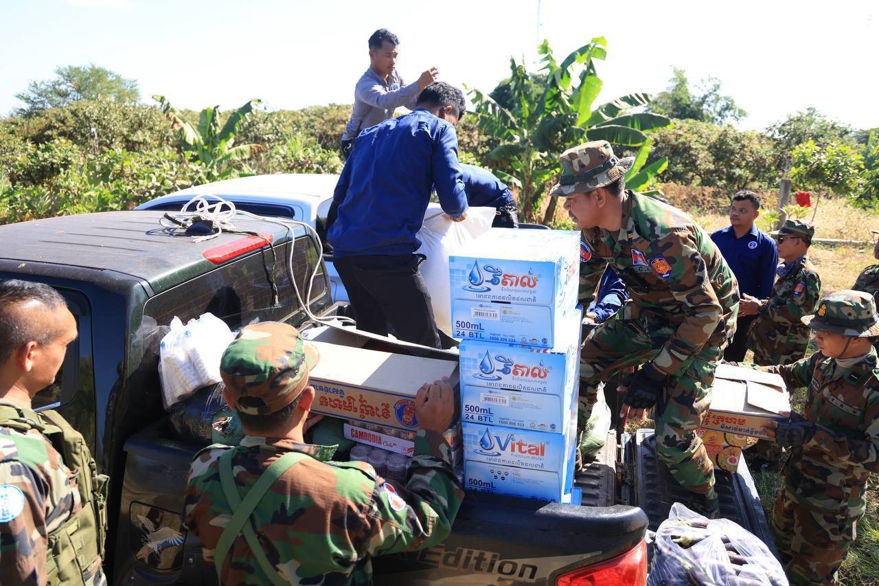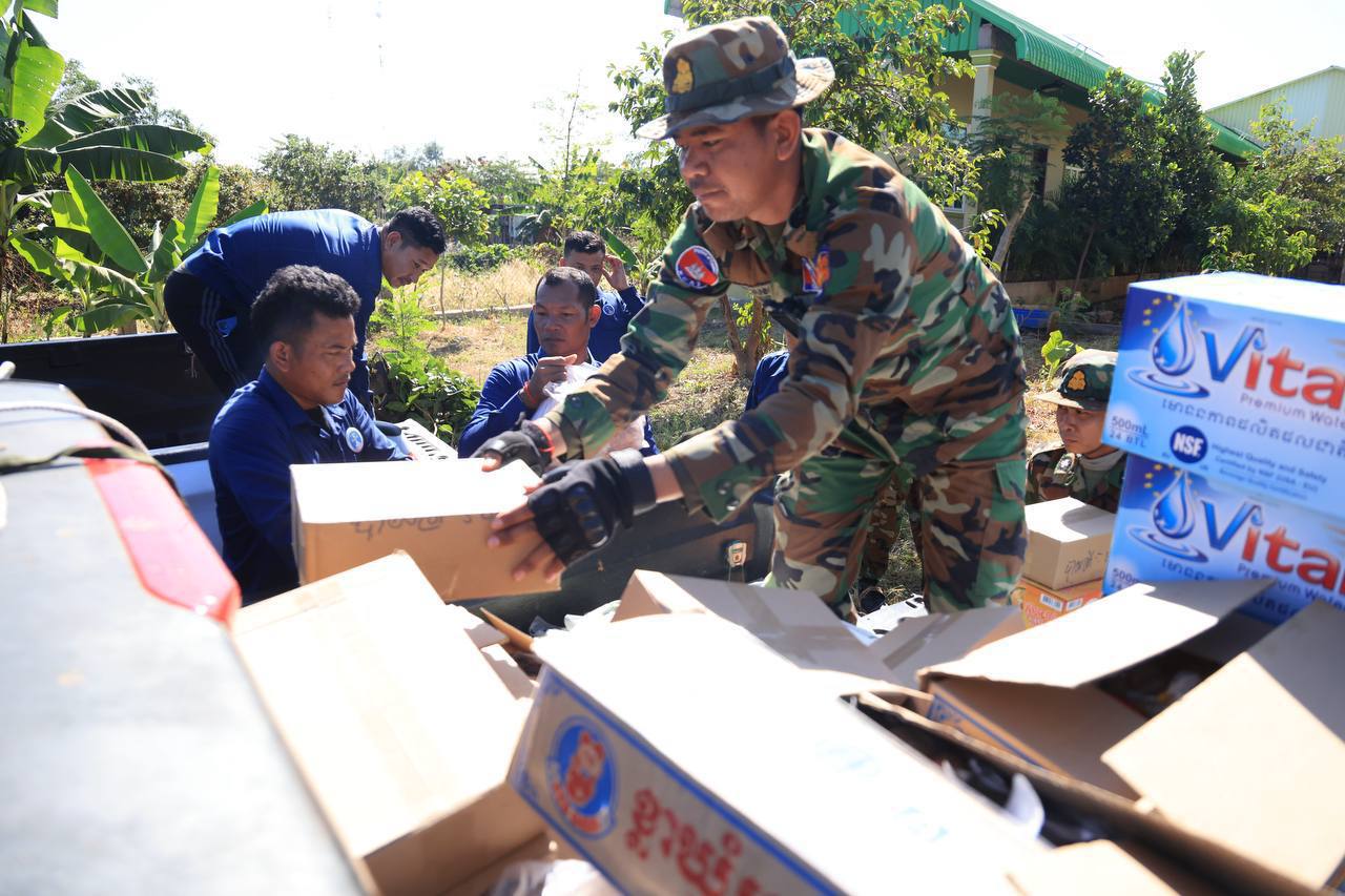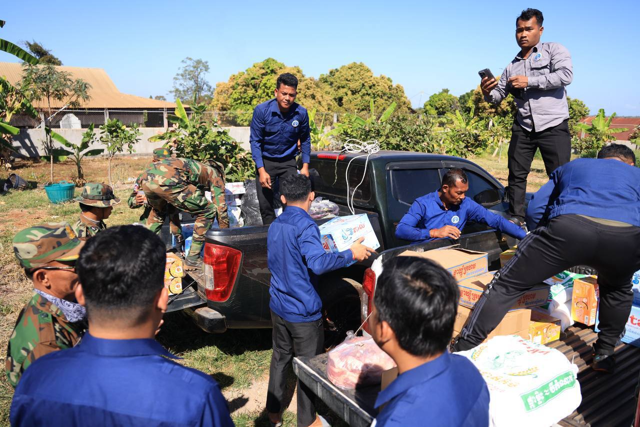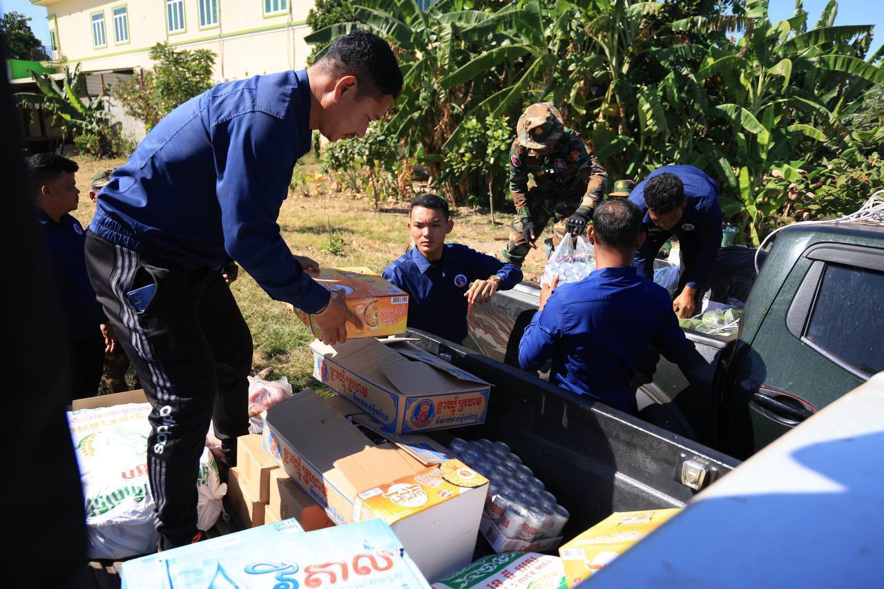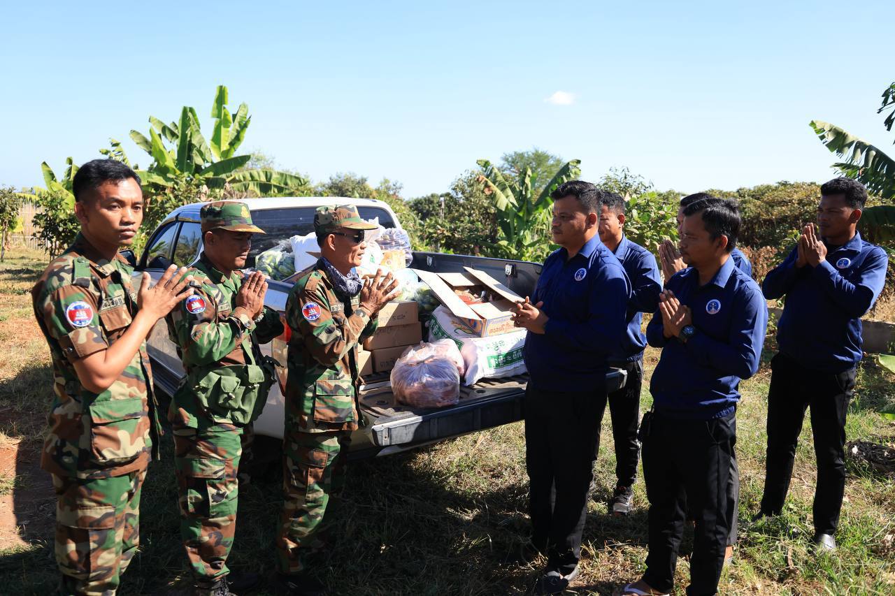 ក្នុងបុព្វហេតុការពារជាតិ! ក្រុមយុវជនបូជាការពារយុត្តិធម៌ ក្រោមការចង្អុលបង្ហាញរបស់អ្នកឧកញ៉ា ឡេង ណាវ៉ាត្រា បាននាំយកស្បៀង និងសម្ភារៈចាំបាច់ប្រគល់ជូនវីរកងទ័ព និងជនភៀសសឹក