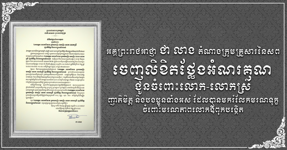 អគ្គព្រះរាជអាជ្ញា ជា លាង តំណាងក្រុមគ្រួសារនៃសព ចេញលិខិតថ្លែងអំណរគុណ ជូនចំពោះលោក-លោកស្រី ញាតិមិត្ត និងបងប្អូនទាំងអស់ ដែលបានមករំលែកមរណទុក្ខ ចំពោះមរណភាពលោកឪពុកបង្កើត