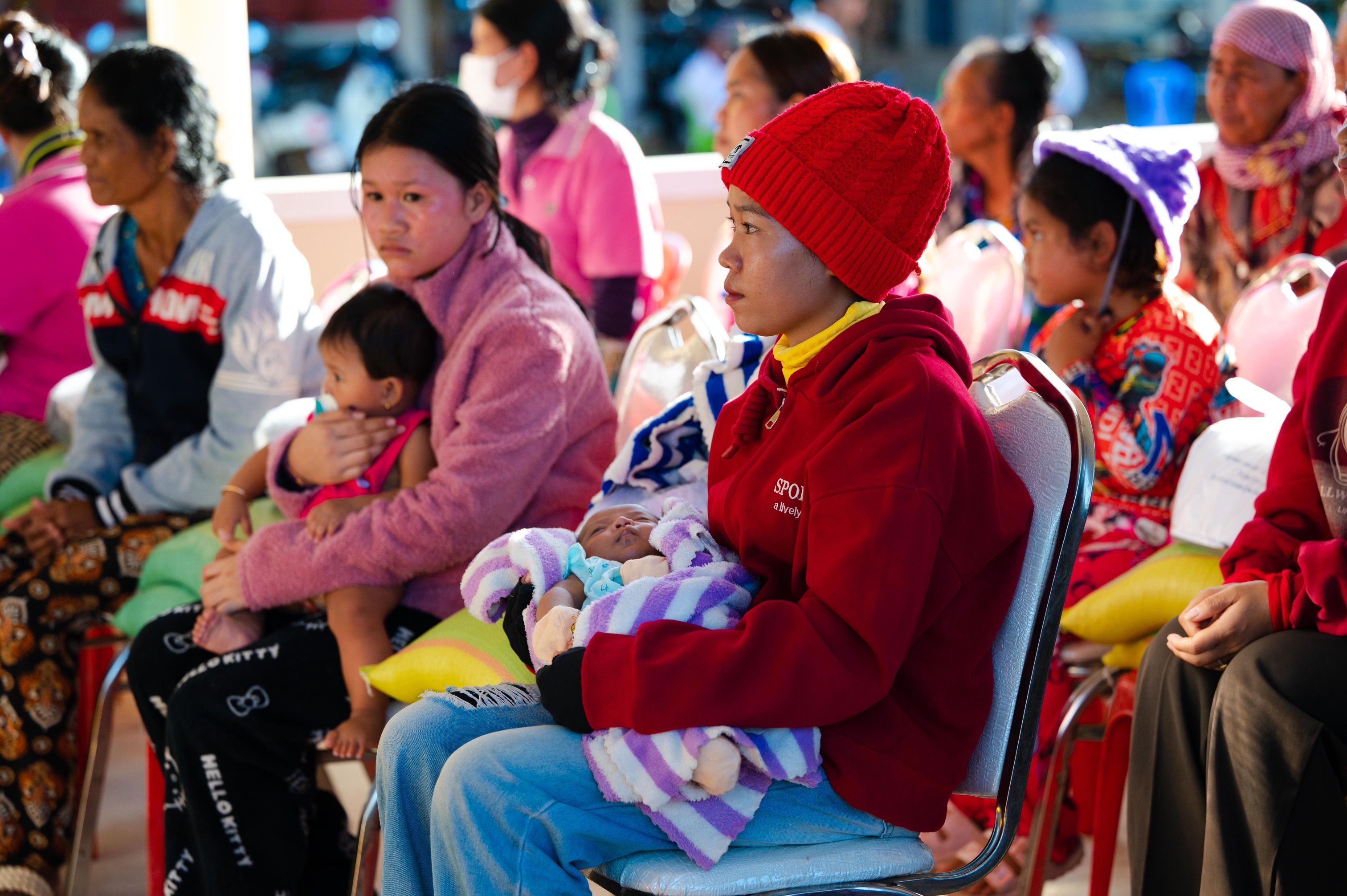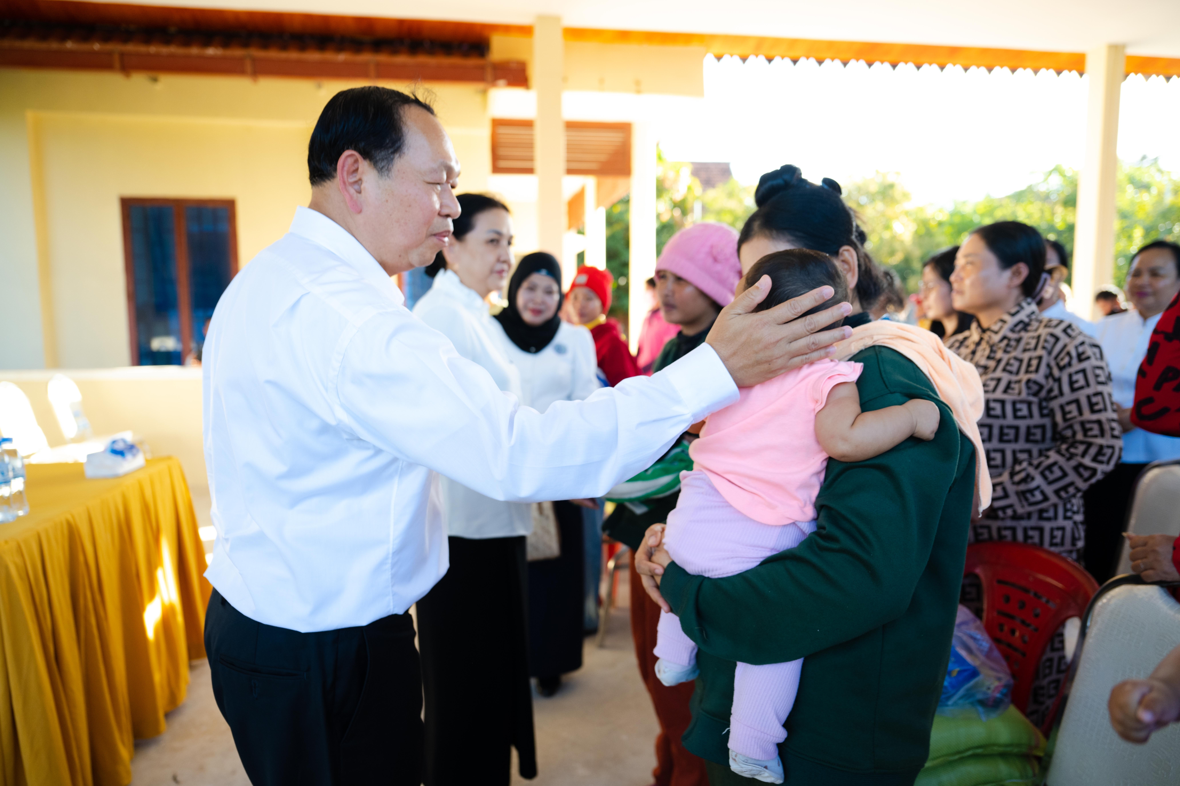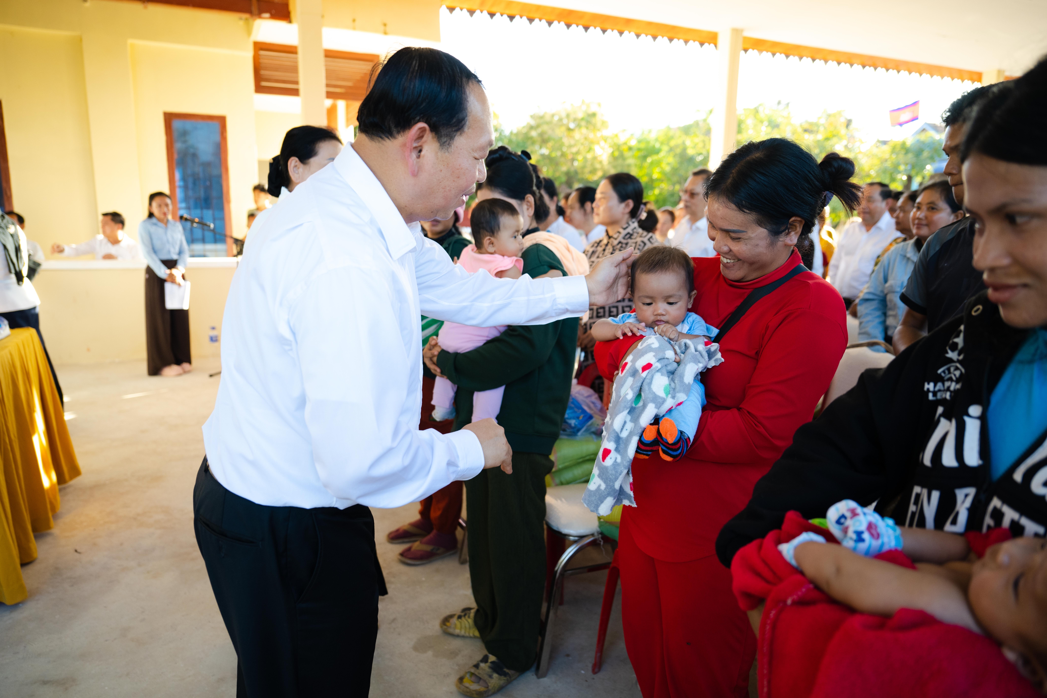 សូមជម្រាបជូនដែរថា ក្នុងពិធីសំណេះសំណាលនោះដែរ លោកប្រធាន និងលោកជំទាវ បាននាំយកគ្រឿងឧបភោគបរិភោគ រួមមាន៖ ១. អង្ករ, ២. ត្រីខ, ៣. សារ៉ុង, ៤. ក្រមា, ៥. សំឡីអនាម័យ, ៦. ទឹកត្រី, ៧. ទឹកស៊ីអ៊ីវ ព្រមទាំងថវិកាមួយចំនួន ដែលអំណោយដ៏ថ្លៃថ្លារបស់ សម្ដេចមហាបវរធិបតី ហ៊ុន ម៉ាណែត នាយករដ្ឋមន្ដ្រីនៃព្រះរាជាណាចក្រកម្ពុជា និងលោកស្រីបណ្ឌិត ពេជ ចន្ទមុន្នី ជូនដល់បងប្អូនប្រជាពលរដ្ឋទាំងអស់ផងដែរ។ ជាមួយគ្នានោះ លោកស្រីប្រធានកិត្តិយស លោកស្រីប្រធាន និងសមាជិកា នៃសមាគមនារីកម្ពុជាដើម្បីសន្តិភាពនិងអភិវឌ្ឍន៍ នៃក្រសួងអភិវឌ្ឍន៍ជនបន បានជូនថវិកាមួយចំនួនបន្ថែមទៀតដល់បងប្អូនស្ដ្រីដែលទើបសម្រាលកូនរួចចំនួន ៦នាក់ផងដែរ៕
