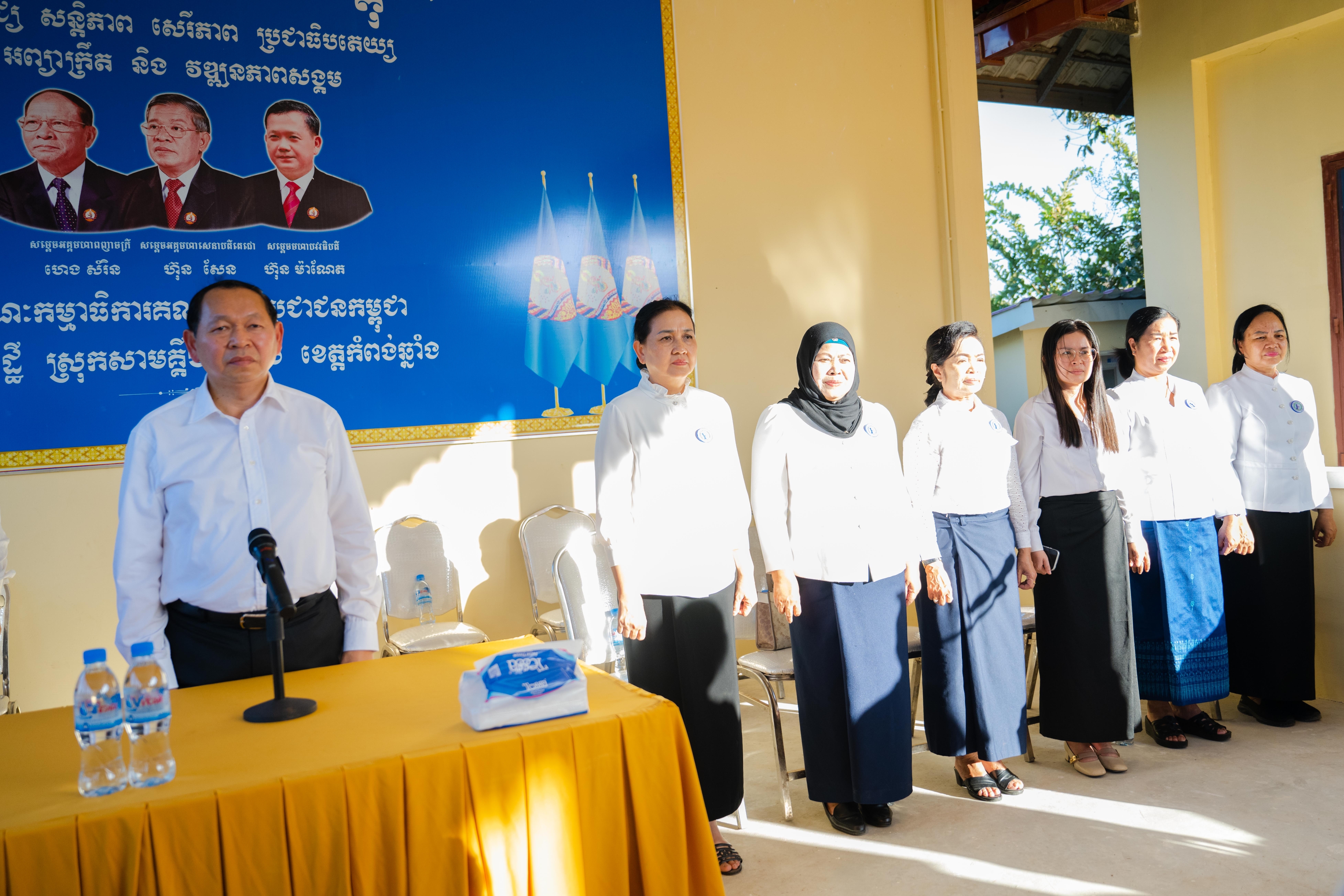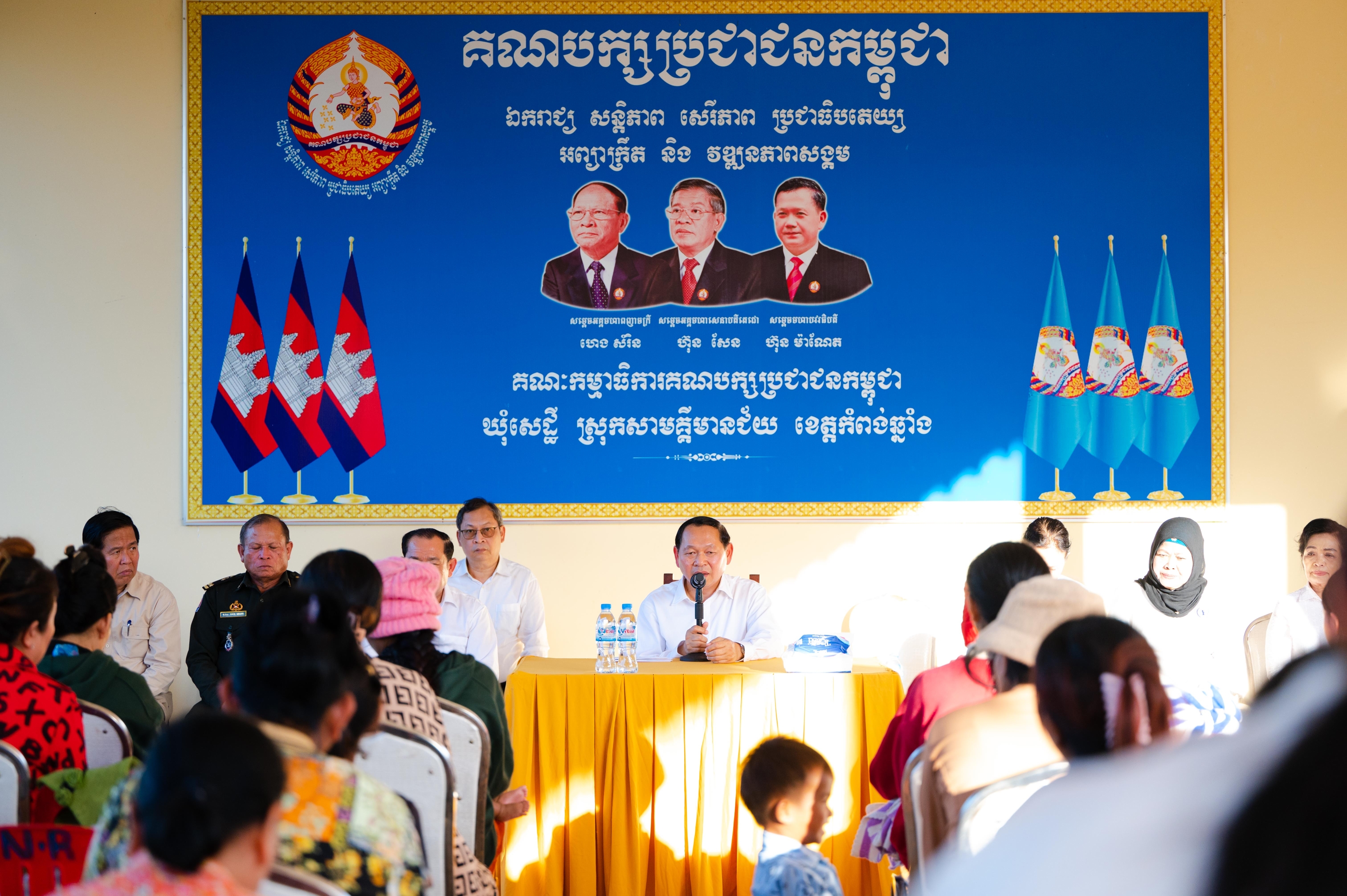 លោកប្រធាន បានមានប្រសាសន៍សំណេះសំណាល ដោយបានថ្លែងណរគុណជាអនេកប្បការ ដែលបានអនុញ្ញាតឱ្យស្វាមី ឃ្លាតឆ្ងាយពីគ្រួសារ ទៅបំពេញបេសកកម្មនៅសមរភូមិមុខ ដើម្បីការពារបូរណភាពទីកដីកម្ពុជា តទល់នឹងការឈ្លានពានដោយខុសច្បាប់របស់ទាហានសៀម ចូលក្នុងដែនអធិបតេយ្យនៃព្រះរាជាណាចក្រកម្ពុជា។ លោកក៏បានផ្ដាំផ្ញើដល់បងប្អូនទាំងអស់ ឱ្យជឿទុកចិត្តលើកងកម្លាំងយោធាកម្ពុជា និងរាជរដ្ឋាភិបាលកម្ពុជា ដែលដឹកនាំដោយគណបក្សប្រជាជនកម្ពុជា ព្រមទាំងសូមបងប្អូនកុំមានការព្រួយបារម្ភ ហើយក្រុមការងារគណបក្សគ្រប់លំដាប់ថ្នាក់នឹងយកចិត្តទុកដាក់លើសុខទុក្ខរបស់បងប្អូនគ្រប់ពេលវេលា។