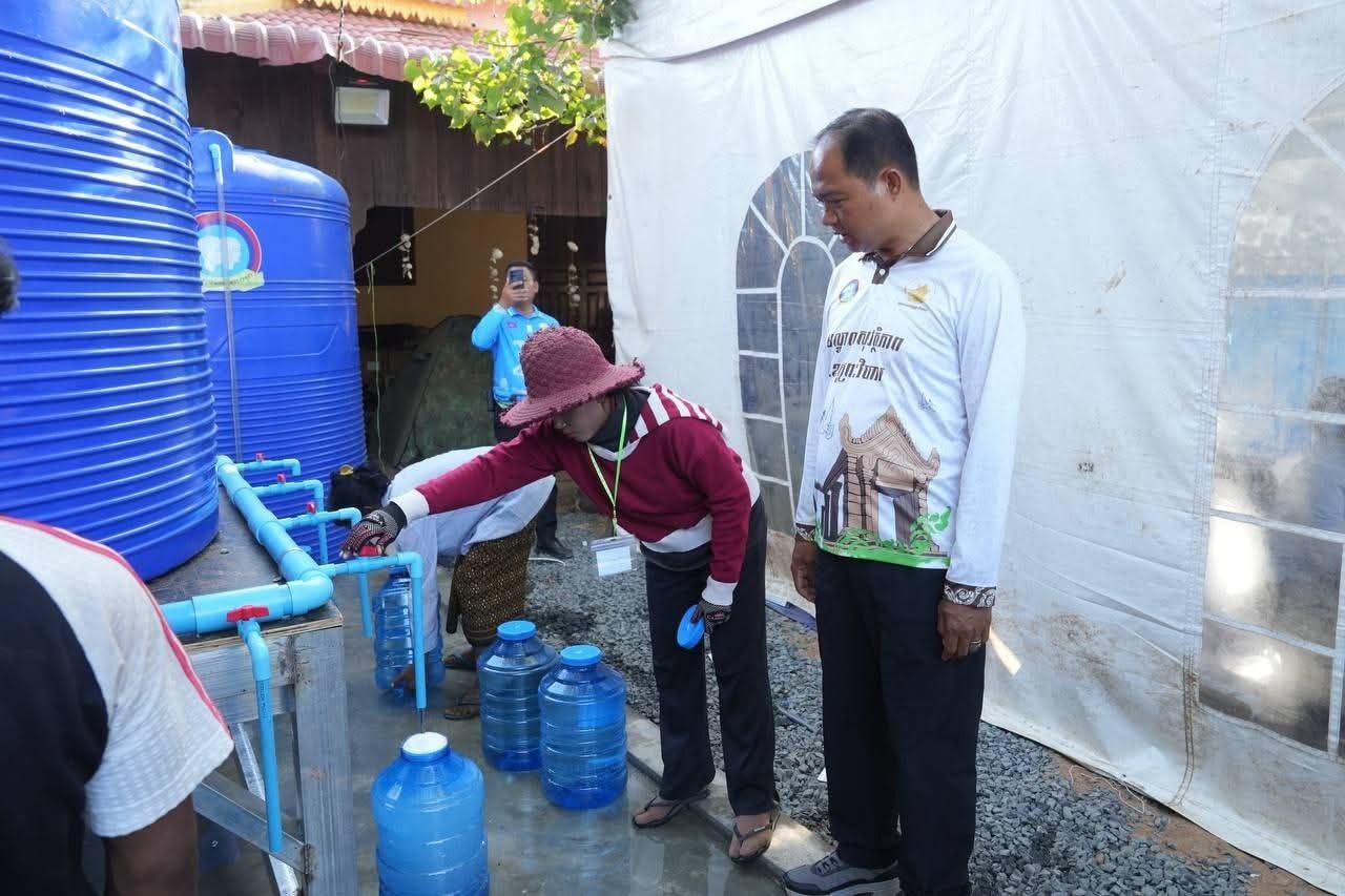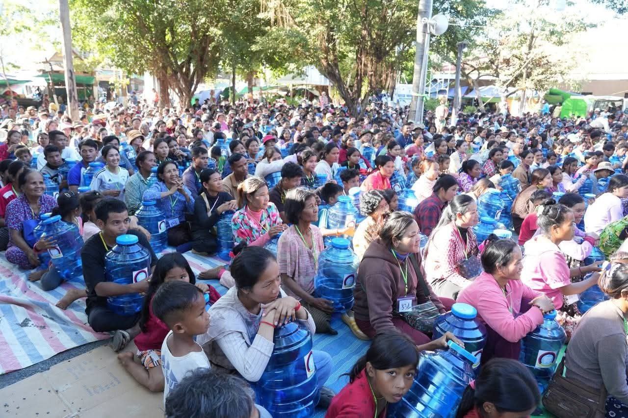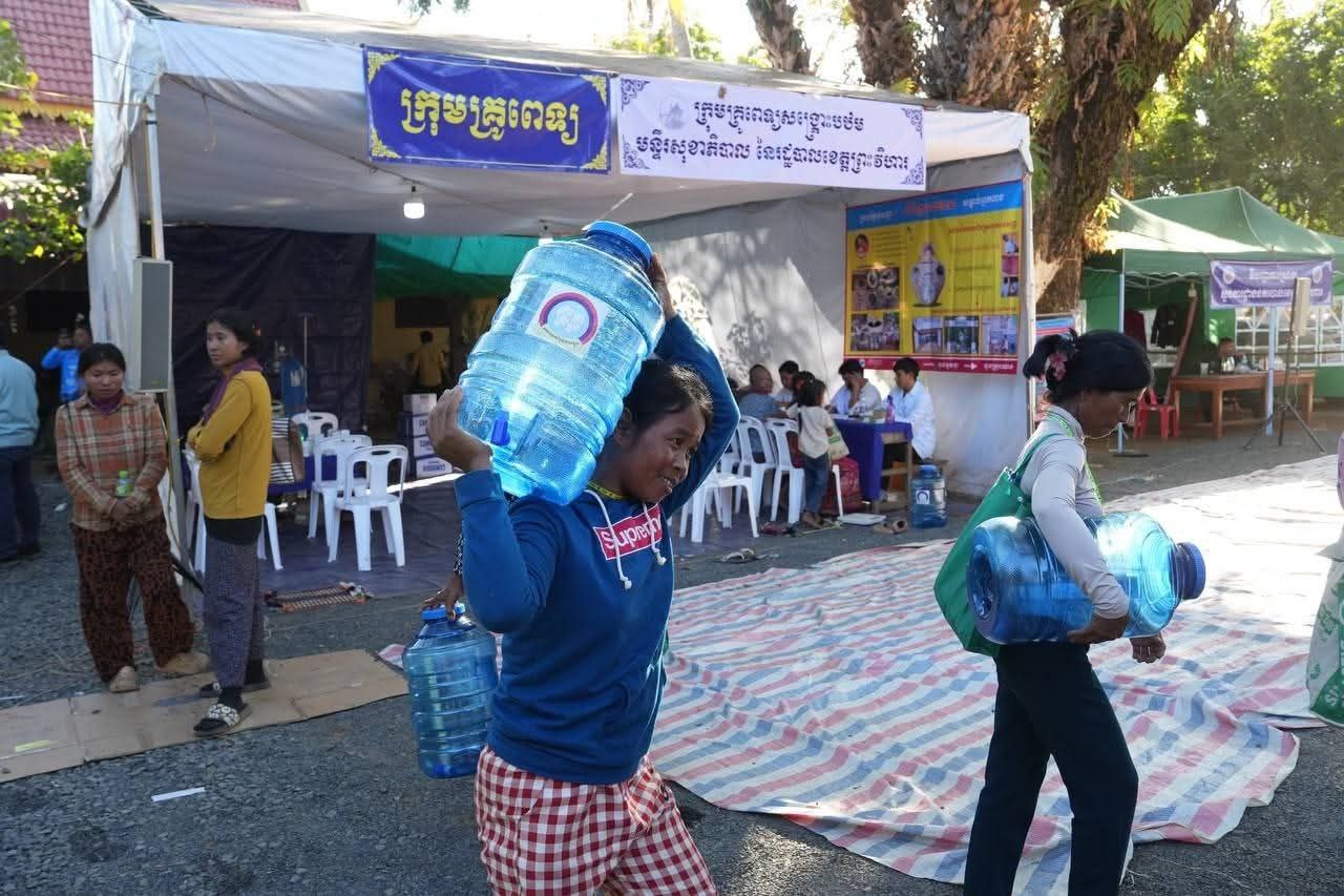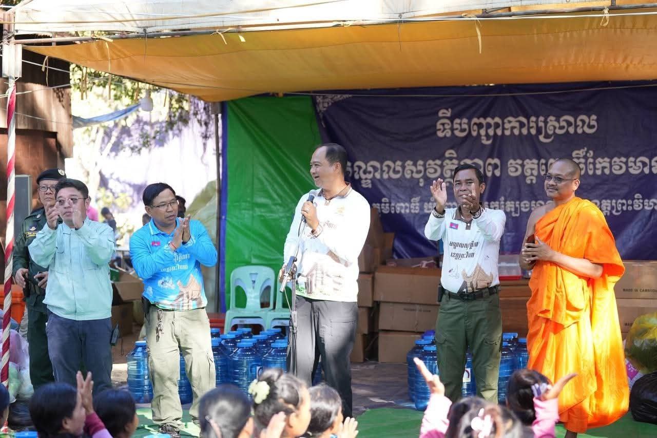 (ព្រះវិហារ)៖ លោក គីម រិទ្ធី អភិបាលខេត្តព្រះវិហារ នៅថ្ងៃទី២៣ ខែធ្នូ ឆ្នាំ២០២៥ បានអញ្ជើញនាំយកធុងទឹកចំណុះ ២០លីត្រ ដែលជាអំណោយរបស់លោក ហ៊ុន ម៉ានី ឧបនាយករដ្ឋមន្ត្រី រដ្ឋមន្ត្រីក្រសួងមុខងារសាធារណៈ និងជាប្រធានសហភាពសហព័ន្ធយុវជនកម្ពុជា ចែកជូនបងប្អូនប្រជាពលរដ្ឋភៀសសឹក ដែលកំពុងស្នាក់នៅបណ្តោះអាសន្នមណ្ឌលសុវត្ថិភាពវត្តពោធិ៍កែវមានជ័យ ស្ថិតក្នុងស្រុកត្បែងមានជ័យ ខេត្តព្រះវិហារ។