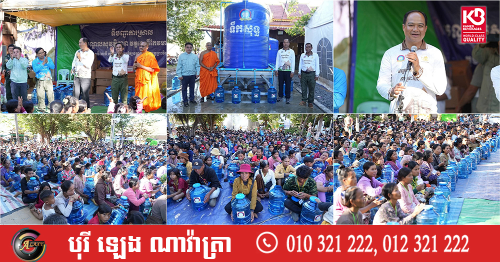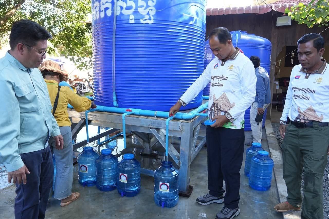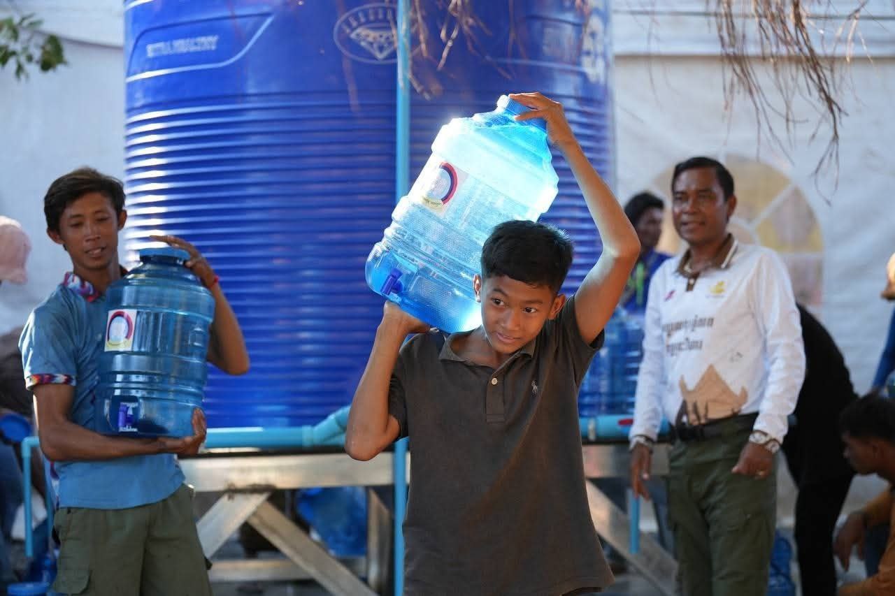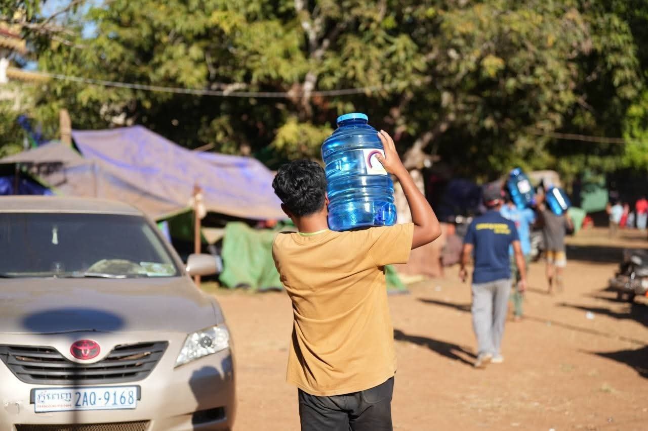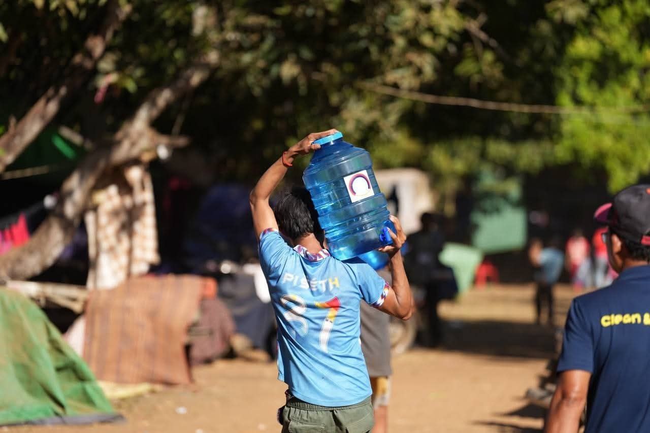 (ព្រះវិហារ)៖ លោក គីម រិទ្ធី អភិបាលខេត្តព្រះវិហារ នៅថ្ងៃទី២៣ ខែធ្នូ ឆ្នាំ២០២៥ បានអញ្ជើញនាំយកធុងទឹកចំណុះ ២០លីត្រ ដែលជាអំណោយរបស់លោក ហ៊ុន ម៉ានី ឧបនាយករដ្ឋមន្ត្រី រដ្ឋមន្ត្រីក្រសួងមុខងារសាធារណៈ និងជាប្រធានសហភាពសហព័ន្ធយុវជនកម្ពុជា ចែកជូនបងប្អូនប្រជាពលរដ្ឋភៀសសឹក ដែលកំពុងស្នាក់នៅបណ្តោះអាសន្នមណ្ឌលសុវត្ថិភាពវត្តពោធិ៍កែវមានជ័យ ស្ថិតក្នុងស្រុកត្បែងមានជ័យ ខេត្តព្រះវិហារ។