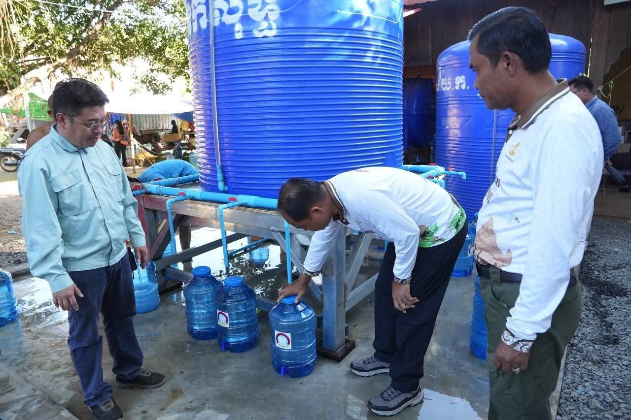អភិបាលខេត្តព្រះវិហារ ចែកធុងទឹក ជាអំណោយឧបនាយករដ្ឋមន្ត្រី ហ៊ុន ម៉ានី និងដាក់ឱ្យប្រើប្រាស់ប្រព័ន្ធម៉ាស៊ីនផលិតទឹកសុទ្ធ ជូនពលរដ្ឋភៀសសឹកបានប្រើប្រាស់ នៅមណ្ឌលសុវត្ថិភាពវត្តពោធិ៍កែវមានជ័យ ស្រុកត្បែងមានជ័យ