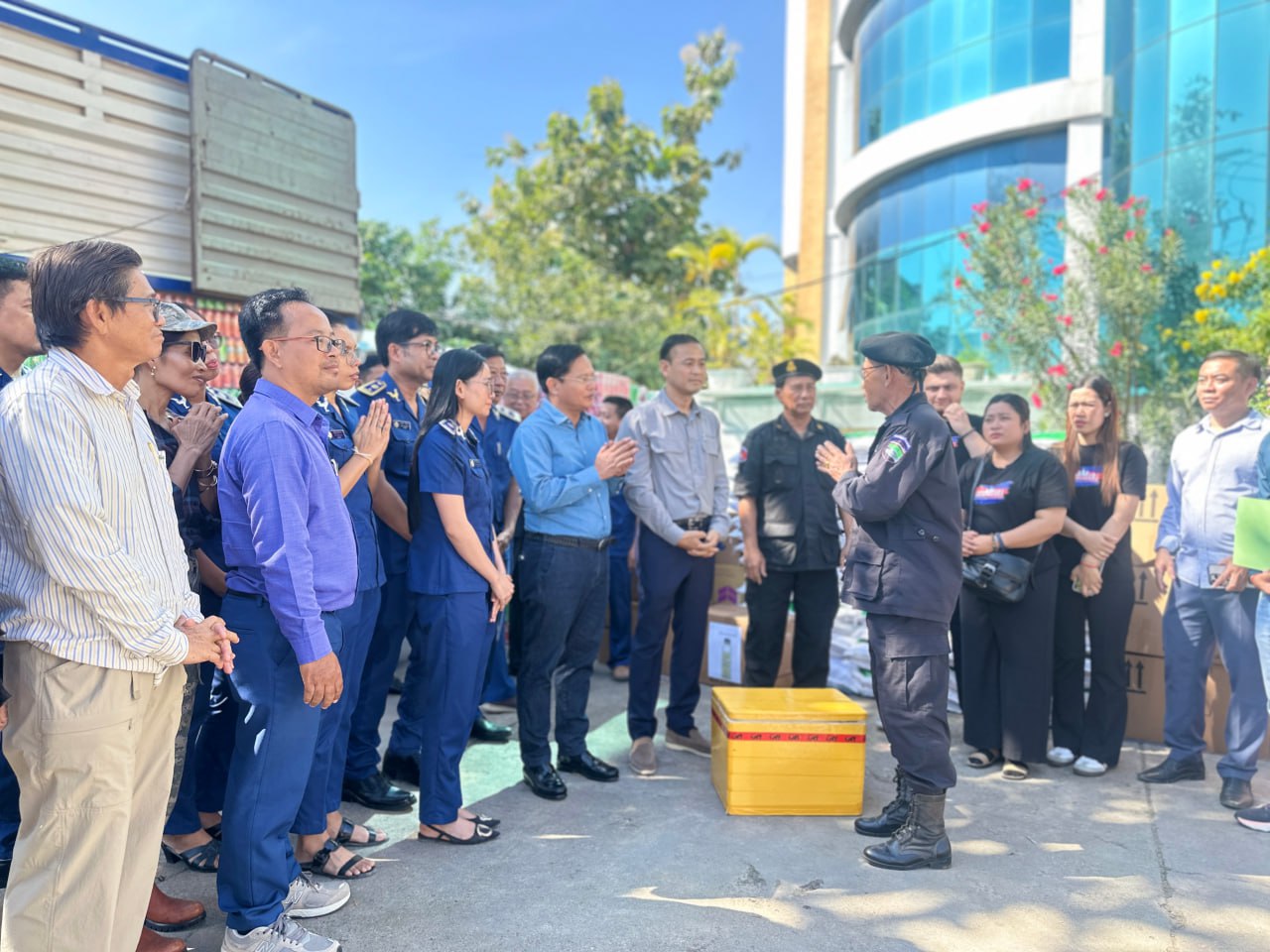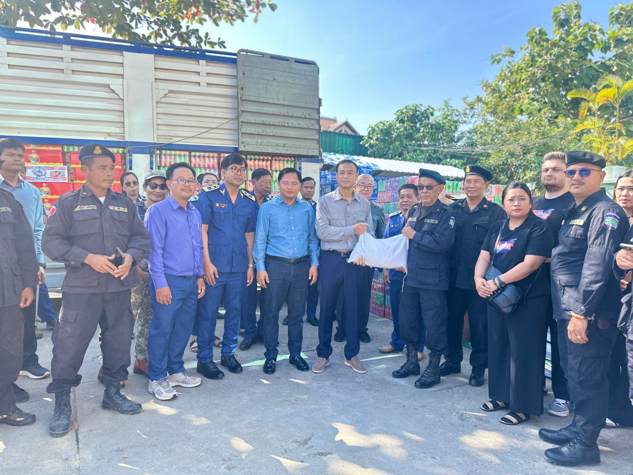 (បាត់ដំបង)៖ លោក ហេង សុខណាង និងបណ្ឌិត ម៉ិញ បានកុសល អគ្គនាយករងនៃអគ្គនាយកដ្ឋានពន្ធដារ តំណាងរបស់លោក គង់ វិបុល រដ្ឋមន្រ្តីប្រតិភូអមនាយករដ្ឋមន្រ្តី និងជាប្រតិភូរាជរដ្ឋាភិបាល ទទួលបន្ទុកជាអគ្គនាយកនៃអគ្គនាយកដ្ឋានពន្ធដារ បាននាំយកនូវថវិកា ស្បៀងអាហារ និងសម្ភារៈចំាបាច់មួយចំនួន ពីការបរិច្ចាគថវិកាផ្ទាល់របស់ថ្នាក់ដឹកនាំ មន្រ្តីរាជការ និងមន្រ្តីជាប់កិច្ចសន្យានៃអគ្គនាយកដ្ឋានពន្ធដារ ព្រមទាំងពីសប្បុរសជននានា រួមមាន អង្ករ ៦តោន ទឹកសុទ្ធ ៣០០កេស កូកាកូឡា ១០០កេស ហ្វានតា ២០០កេស ឆៃប៉ូវប្រៃ ៣០០គីឡូ សាច់ក្រក ៣០០គីឡូ ទឹកត្រី ៣០០យួរ ទឹកស៊ីអ៊ីវ ៣០០យួរ អំបិល ៣០០គីឡូ ស្ករស ៣០០គីឡូ ប៊ីចេង ៣០០គីឡូ ត្រីខ ៣០កេស សាច់ផាត់មាន់ ៣០០គីឡូ និងសម្ភារៈផ្សេងៗមួយចំនួន ជូនដល់បញ្ជាការដ្ឋានរថក្រោះ កងទ័ពជើងគោក និងគ្រួសារវីរកងទ័ព តាមរយៈការងារសម្ព័ន្ធមេត្រីភាពរវាងអគ្គនាយកដ្ឋានពន្ធដារ និងបញ្ជាការដ្ឋានរថក្រោះ កងទ័ពជើងគោក ដែលប្រព្រឹត្តទៅនៅសាខាពន្ធដារខេត្តបាត់ដំបង៕
