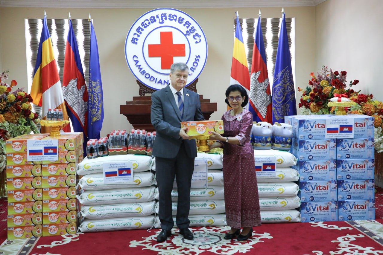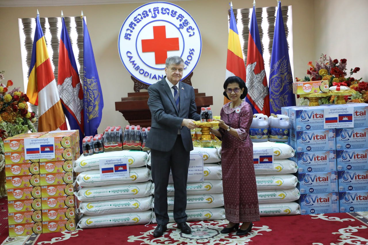១៖ លោក អាណាតូលី បូរ៉ូវីក (Anatoly Borovik) ឯកអគ្គរដ្ឋទូតវិសាមញ្ញ និងពេញសមត្ថភាពនៃសហព័ន្ធរុស្ស៊ី ប្រចាំព្រះរាជាណាចក្រកម្ពុជា ឧបត្ថម្ភ អង្ករ២តោន, ប្រេងឆាចំណុះ ៥លីត្រ ១៥ប៊ីដុង, មី ៥៥កេស, ទឹកបរិសុទ្ធ ១០០កេស, ទឹកស៊ីអ៊ីវ ៤០យូរ, ទឹកត្រីចំណុះ ៥លីត្រ ១៥ប៊ីដុង។ អំណោយនេះលើកទី២ ហើយសម្រាប់ស្ថានទូតរុស្សី ដោយលើកទី១ប្រគល់ជូន នៅថ្ងៃទី២២ ខែតុលា ឆ្នាំ២០២២។