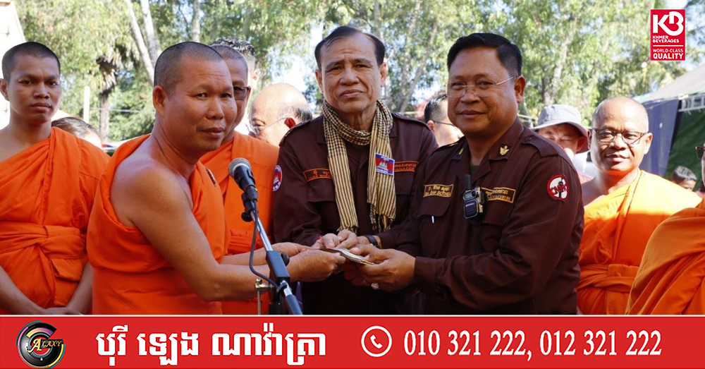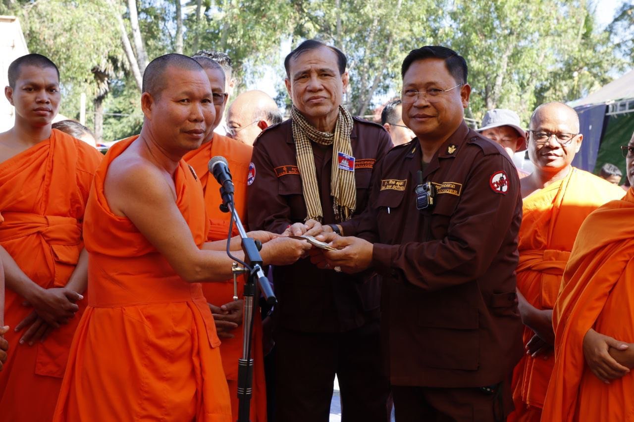 ព្រះអនុគណស្រុកលើកដែក ខេត្តកណ្តាល និងក្រុមការងាររាជរដ្ឋាភិបាលចុះមូលដ្ឋានស្រុកលេីកដែក នាំអំណោយចែកជូនជនភៀសសឹកចំនួន ១ ៦០០គ្រួសារ