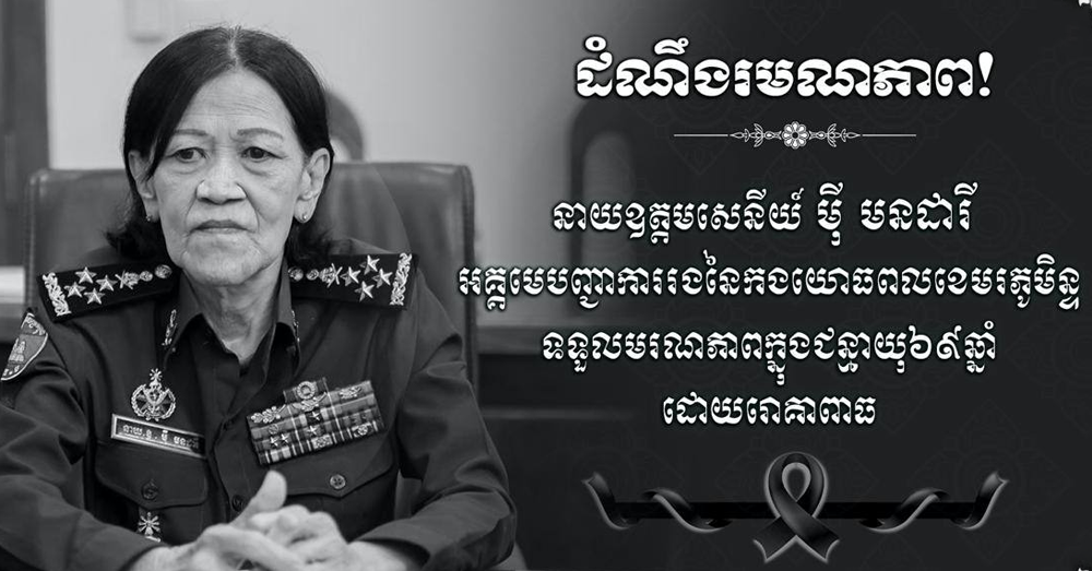 ដំណឹងមរណភាព! លោកជំទាវ នាយឧត្តមសេនីយ៍ ម៉ី មនដារី អគ្គមេបញ្ជាការរងនៃកងយោធពលខេមរភូមិន្ទ ទទួលមរណភាពក្នុងជន្មាយុ៦៩ ឆ្នាំ ដោយរោគាពាធ