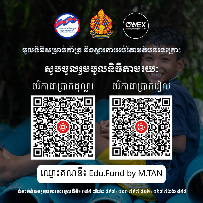 សូមចូលរួមមូលនិធិសម្រាប់គាំទ្រ និងស្តារការអប់រំតាមតំបន់រងគ្រោះ តាមរយៈ KHQR