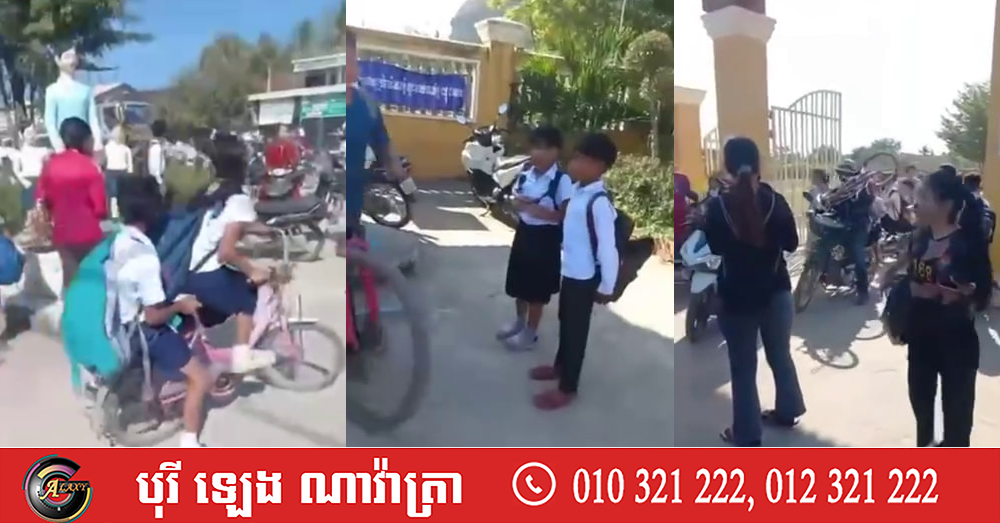 ទិដ្ឋភាពសិស្សានុសិស្សរត់ចេញពីសាលារៀន នៅភ្នំសំពៅ ក្រោយយន្ដហោះចម្បាំង របស់ទាហានឈ្លានពានសៀមទម្លាក់គ្រាប់ (Video inside)