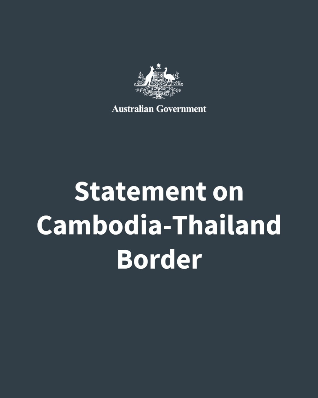 សេចក្តីថ្លែងការណ៍របស់រដ្ឋាភិបាលអូស្ត្រាលី ដែលផ្សព្វផ្សាយលើគេហទំព័រផ្លូវការរបស់ស្ថានទូតអូស្ត្រាលីប្រចាំកម្ពុជា នៅថ្ងៃទី២៤ ខែធ្នូ ឆ្នាំ២០២៥នេះ មានខ្លឹមសារថា៖ «យើងសូមចូលរួមរំលែកទុក្ខយ៉ាងក្រៀមក្រំ ចំពោះក្រុមគ្រួសារដែលបានបាត់បង់សមាជិកគ្រួសារ ក៏ដូចជាមនុស្សជាទីស្រលាញ់របស់ខ្លួន ហើយសូមអំពាវនាវឱ្យភាគីទាំងពីរធានា ឲ្យបាននូវការការពារសុវត្ថិភាពដល់ជនស៊ីវិល ហេដ្ឋារចនាសម្ព័ន្ធស៊ីវិល និងបេតិកភណ្ឌវប្បធម៌។