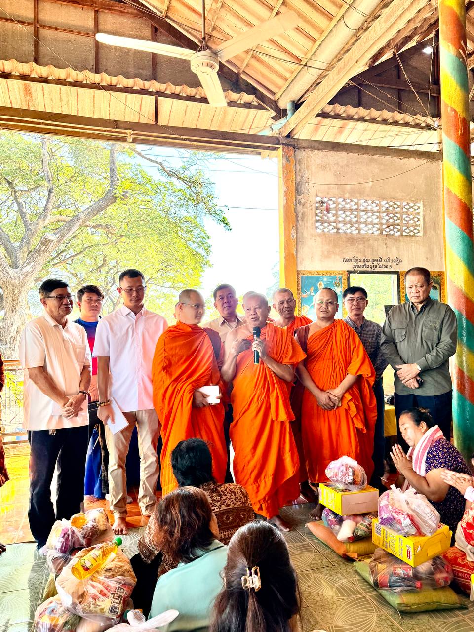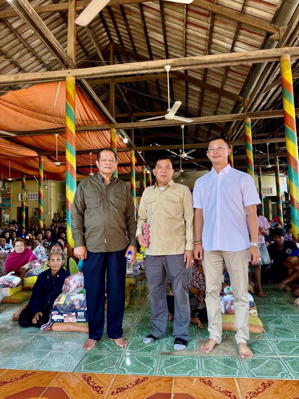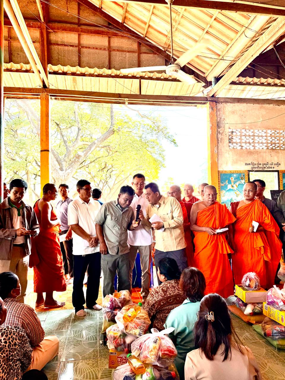 ពិធីនេះមានការសម្របសម្រួលដោយក្រុមការងាររបស់លោក សាន សាង ទីប្រឹក្សាសម្តេចតេជោ ហ៊ុន សែន ប្រធានព្រឹទ្ធសភានៃព្រះរាជាណាចក្រកម្ពុជា។អំណោយរួមមានអង្ករ ១តោនកន្លះ, មី១៥០កេស, ទឹកត្រី ១៥០យួ ទឹកស៊ីអ៉ីវ ១៥០យួរ, ថវិកាចំនួន១លាន ៥០មុឺនរៀល ពងទា ១ ០០០គ្រាប់ និងនំខ្មែរលីលីចំនួន ១៥០កញ្ចប់ នៅក្នុងពិធីចែកអំណោយនេះក៏មានការចូលរួមទទួលស្វាគមន៍យ៉ាងកក់ក្ដៅពីព្រះចៅអធិការវត្ត ដងរុន និងលោកមេឃុំបន្ទាយនាង ស្រុកមង្គលបូរី ខេត្តបន្ទាយមានជ័យផងដែរ។