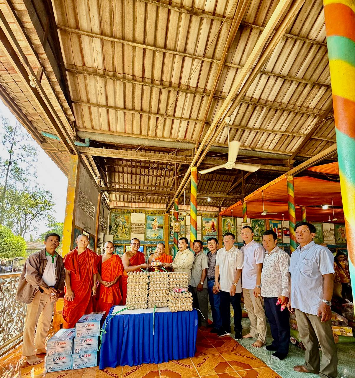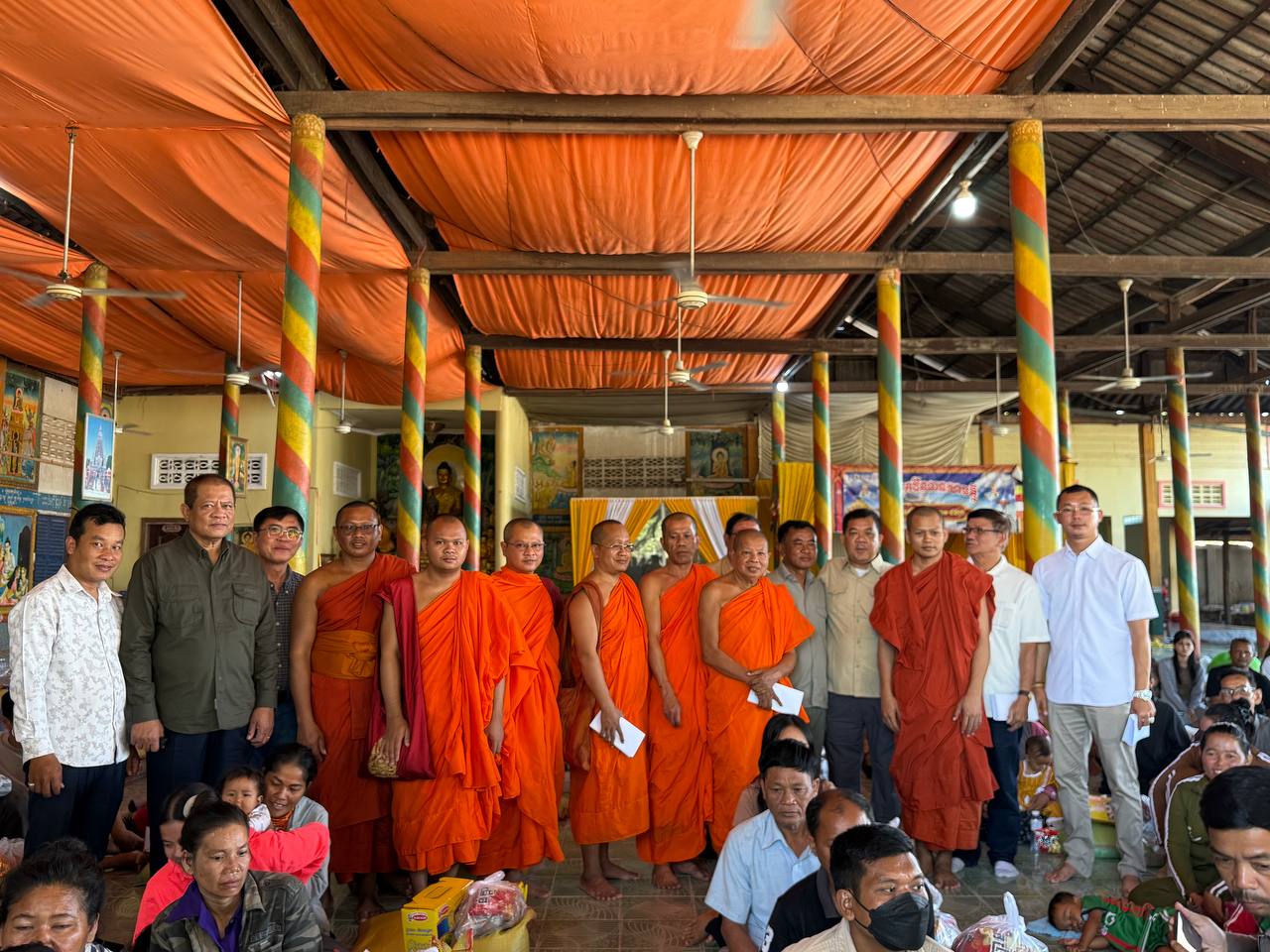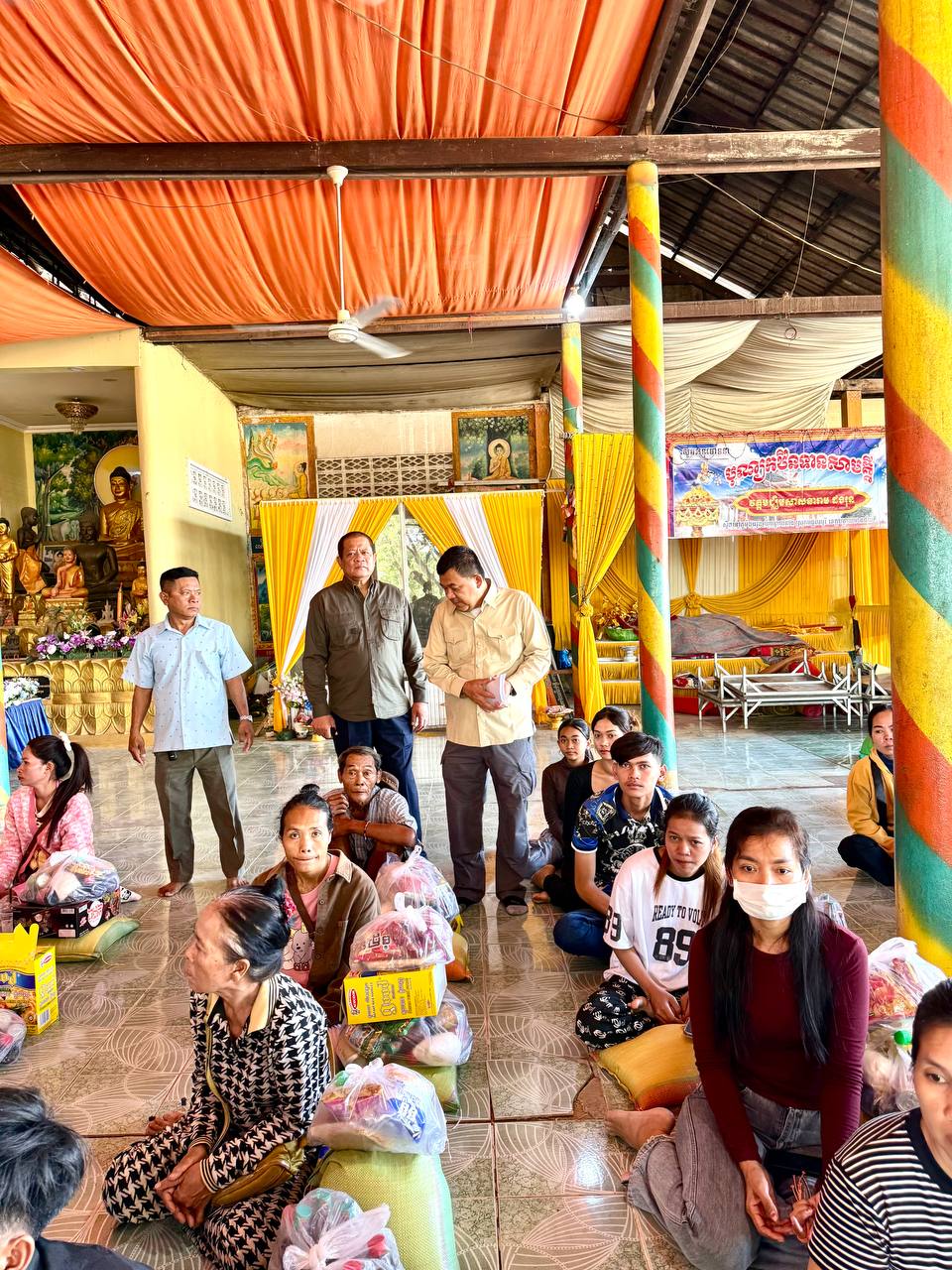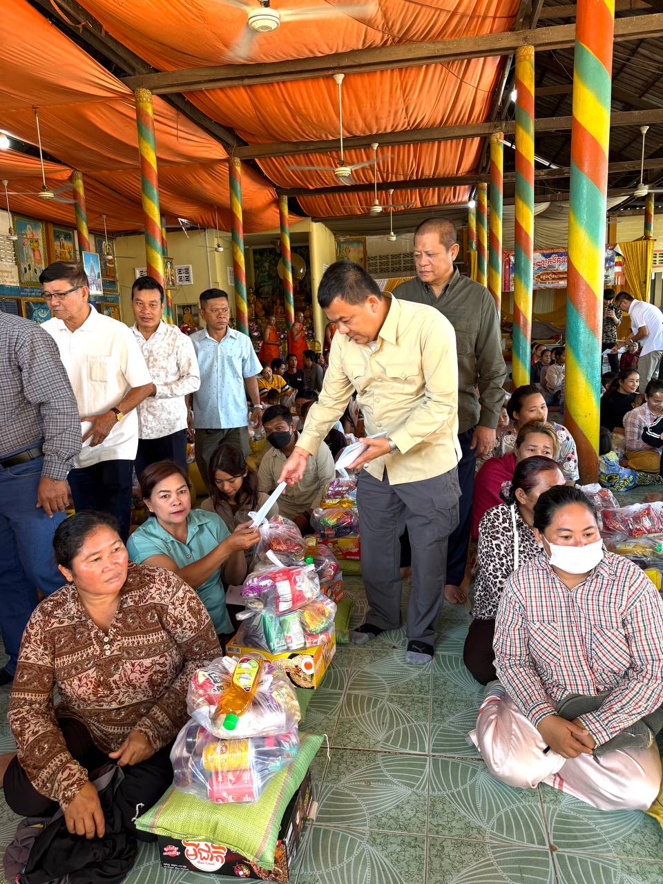 ពិធីនេះមានការសម្របសម្រួលដោយក្រុមការងាររបស់លោក សាន សាង ទីប្រឹក្សាសម្តេចតេជោ ហ៊ុន សែន ប្រធានព្រឹទ្ធសភានៃព្រះរាជាណាចក្រកម្ពុជា។អំណោយរួមមានអង្ករ ១តោនកន្លះ, មី១៥០កេស, ទឹកត្រី ១៥០យួ ទឹកស៊ីអ៉ីវ ១៥០យួរ, ថវិកាចំនួន១លាន ៥០មុឺនរៀល ពងទា ១ ០០០គ្រាប់ និងនំខ្មែរលីលីចំនួន ១៥០កញ្ចប់ នៅក្នុងពិធីចែកអំណោយនេះក៏មានការចូលរួមទទួលស្វាគមន៍យ៉ាងកក់ក្ដៅពីព្រះចៅអធិការវត្ត ដងរុន និងលោកមេឃុំបន្ទាយនាង ស្រុកមង្គលបូរី ខេត្តបន្ទាយមានជ័យផងដែរ។
