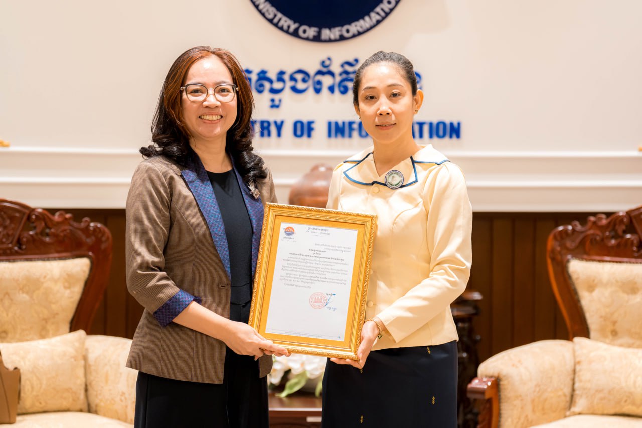 លោកស្រី ទុយ សិរីរតនៈ នេត្រភក្ត្រា ទទួលអំណោយពីថ្នាក់ដឹកនាំក្រសួងព័ត៌មាន សម្រាប់បន្តនាំទៅឧបត្ថម្ភគាំទ្រដល់វីរកងទ័ព និងជនភៀសសឹក
